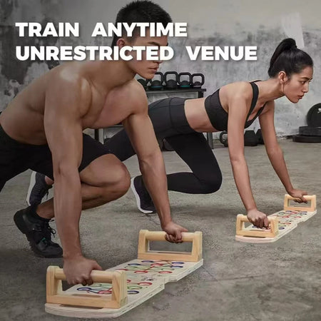 Con una robusta struttura in legno e una base stabile, aiuta a ridurre lo sforzo sui polsi e promuove una forma costante offrendo più posizioni delle mani e profondità controllata. Usalo per eseguire flessioni a diversi angoli, mirare a diversi gruppi muscolari e aggiungere una sfida al core al tuo allenamento. Che tu sia nuovo nel fitness o stia costruendo una palestra domestica, questa panca rende gli allenamenti costanti ed efficaci facili e piacevoli.