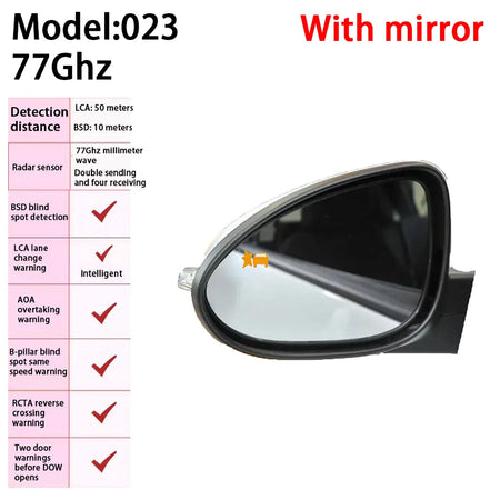 Rimani consapevole e sicuro in ogni viaggio con il Sistema di Avviso Radar con Rilevamento dell'Angolo Morto per la Chevrolet Aveo Sail 4 310C BSD. Questo avanzato sistema di sicurezza utilizza radar mmWave doppi montati sul paraurti posteriore per monitorare i tuoi angoli ciechi e avvisarti di oggetti in movimento a 3–10 metri dietro di te. Quando il pericolo si avvicina durante i cambi di corsia o le fusioni, indicatori LED, segnali acustici e indicatori di direzione sincronizzati ti aiutano a reagire più rapidamente e a evitare collisioni costose. Compatibile con Chevrolet Sail 4 310C (2023–2024) e Chevrolet Aveo 310C (2023–2024), con opzione di personalizzazione degli specchietti per integrare perfettamente le luci di avviso con l'estetica interna del veicolo.