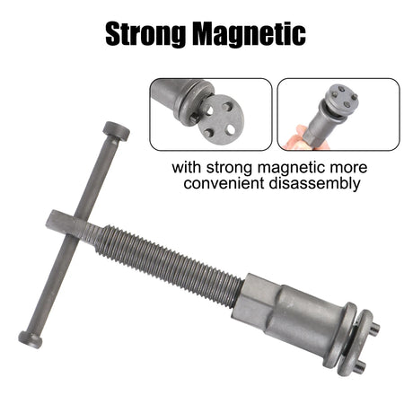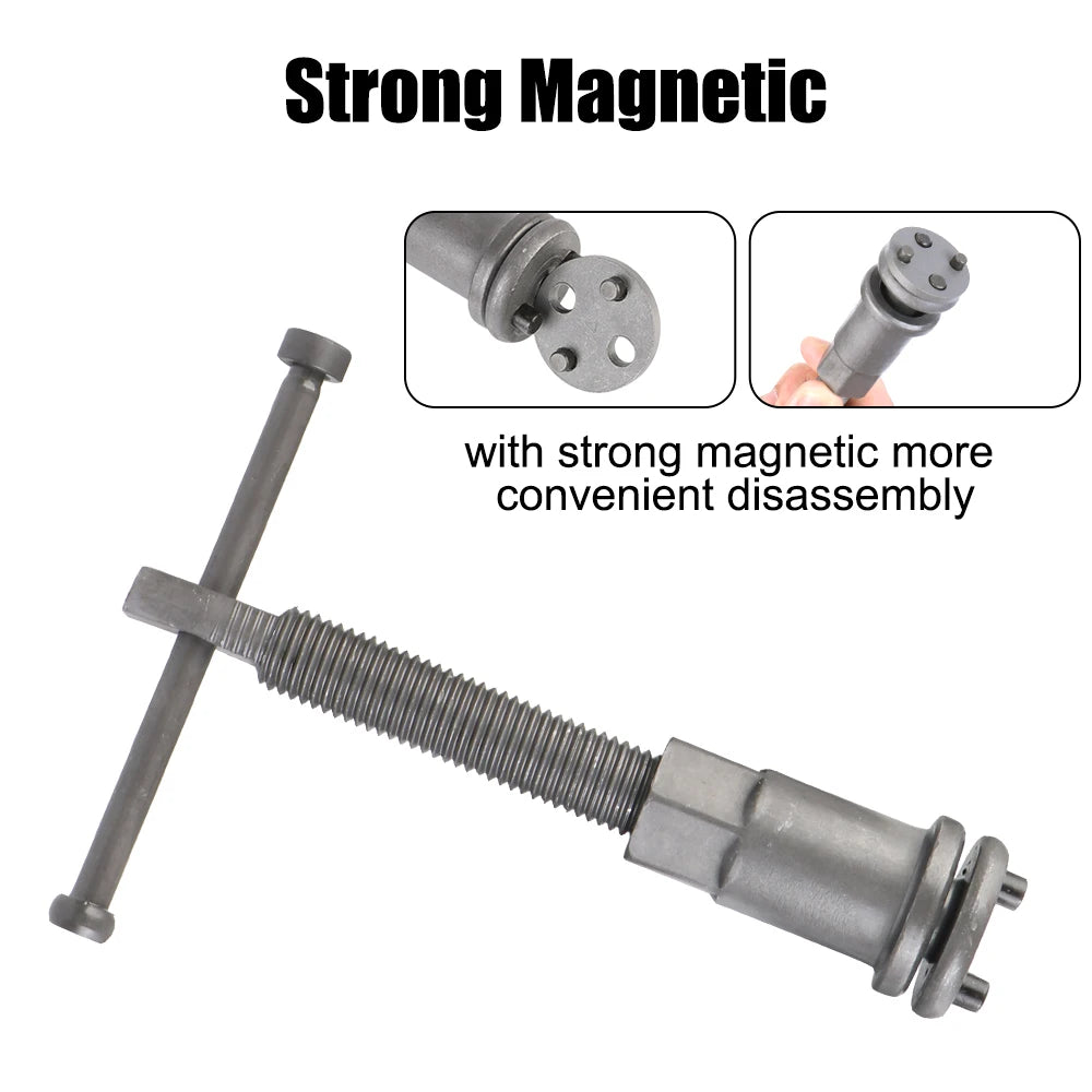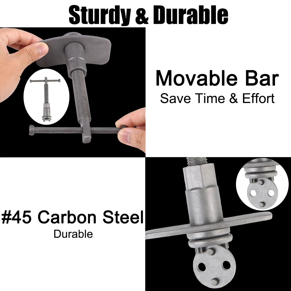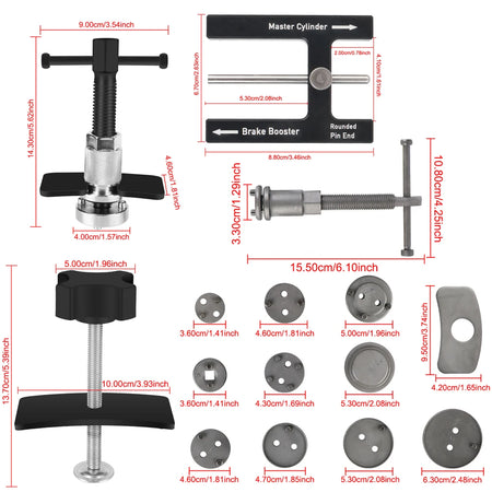- Greitas, saugus stūmoklių atlenkimas: Naudokite šį rinkinį, kad sugrąžintumėte stūmoklius varžtų tipo kaliperiams, nesugadindami sandariklių, rotorių ar dulkių batus.