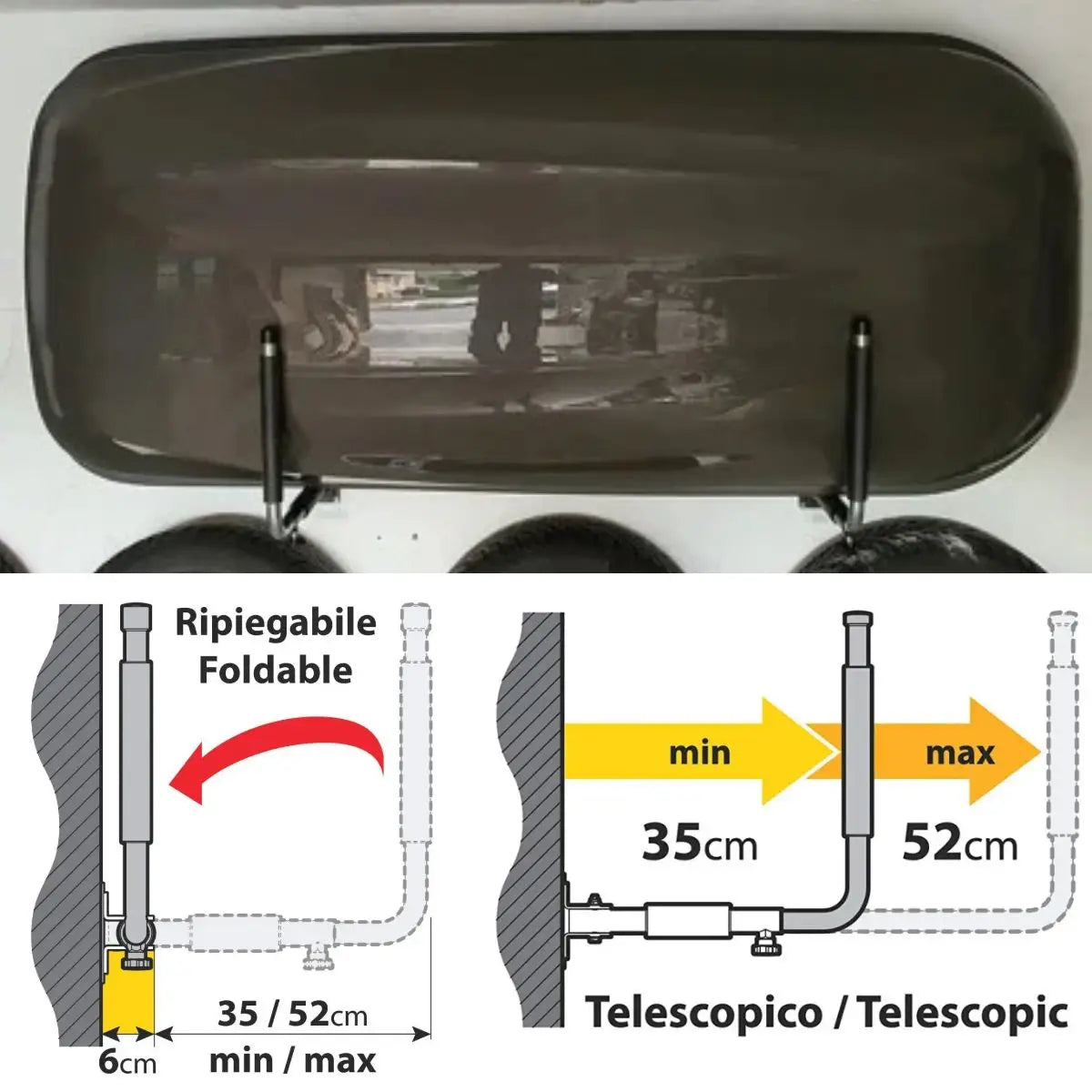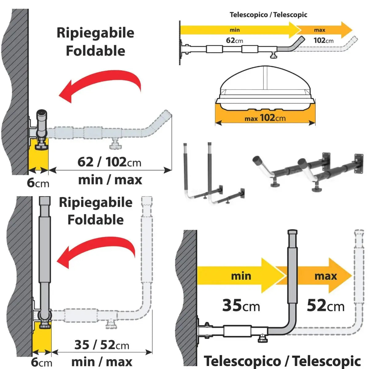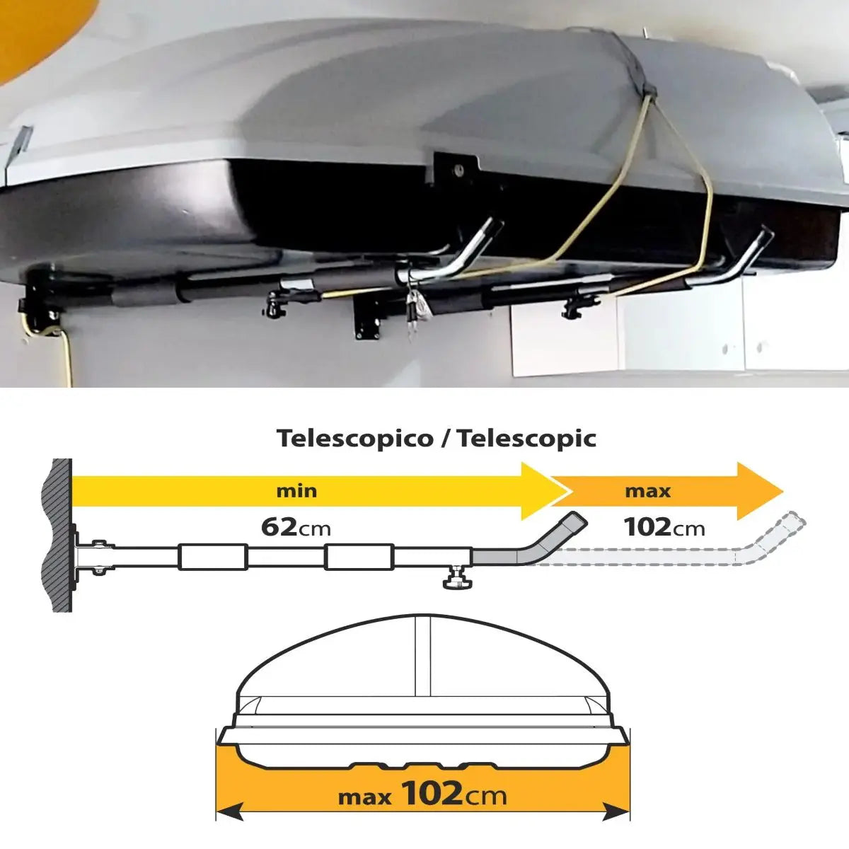 Kompaktiškas, sulankstomas sieninis laikiklis, sukurtas išlaisvinti grindų erdvę ir saugoti didelius daiktus. Pagamintas iš aliuminio lydinio su putų paminkštinimu, kiekvienas laikiklis palaiko iki 50 kg ir reguliuojasi nuo 62–102 cm, kad būtų galima įvairiai saugoti.