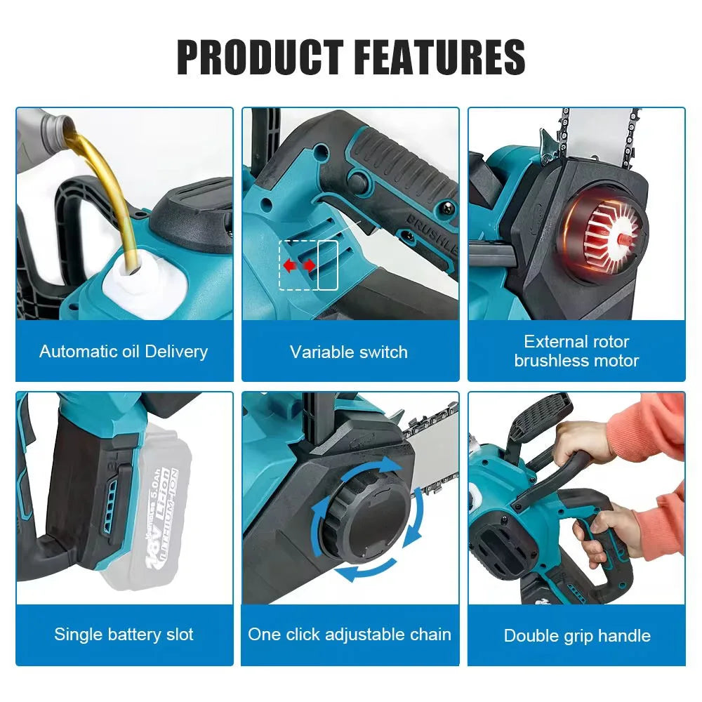 16 colių bešepetėlių grandininis pjūklas automatinis tepimas Makita 18V