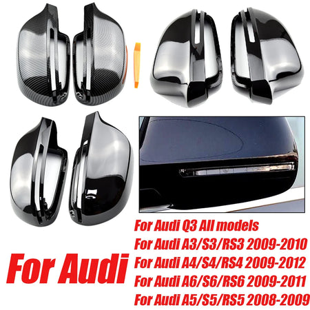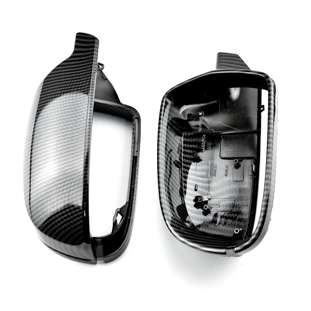 - 2 x anglies rašto veidrodžių dangteliai (kairė ir dešinė) tinkami Audi modeliams