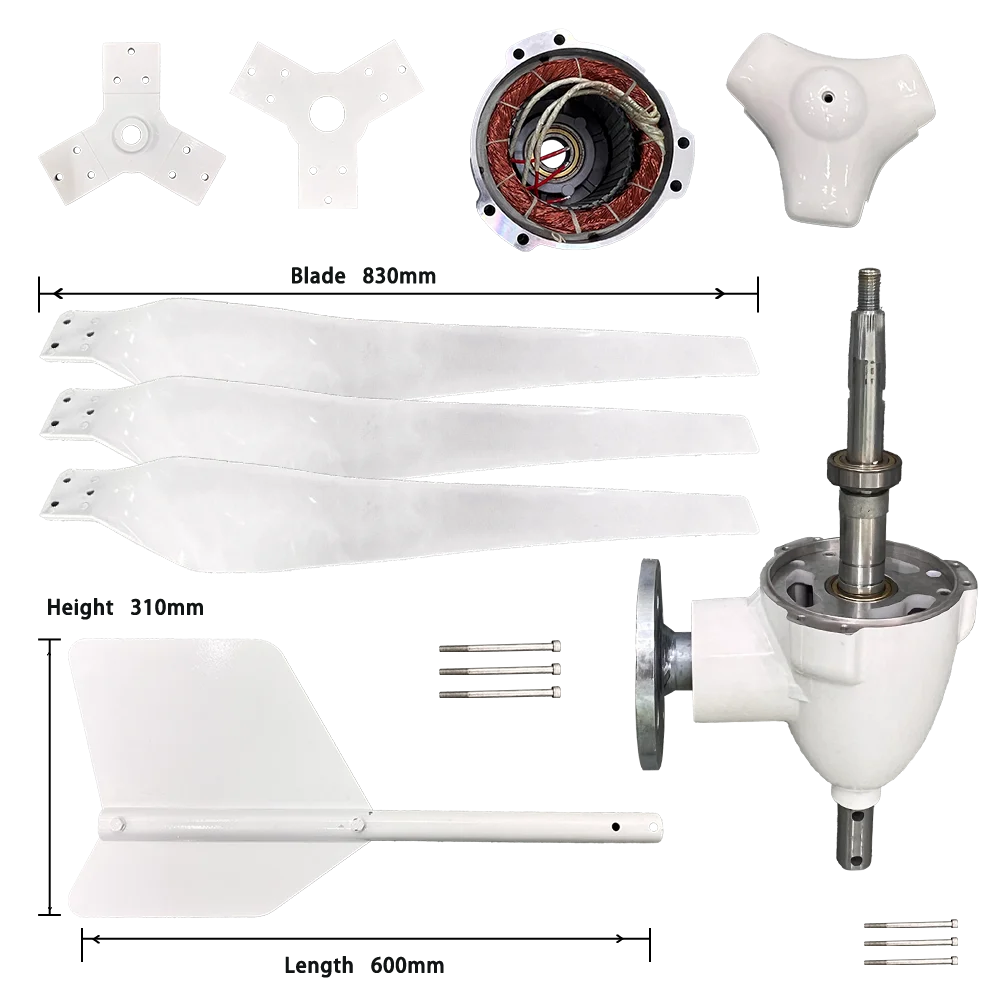 3 ašmenų 20KW / 30KW 96V namų vėjo turbina su valdikliu yra galingas, efektyvus sprendimas, skirtas švarios energijos gamybai šaltinyje. Su 3 ašmenų dizainu ir 830 mm ilgio ašmenimis, ši turbina užtikrina patikimą našumą namams ir mažoms įmonėms. 96V sistema, sujungta su specialiu valdikliu, užtikrina saugų, stabilų išėjimą, o jos balta apdaila ir CE sertifikatas atspindi kokybę ir įsipareigojimą saugumui. Pirmą kartą pagaminta Jiangsu, Kinijoje, SUN-800 modelis yra sukurtas surinkimo montavimui ir ilgalaikiam patikimumui.