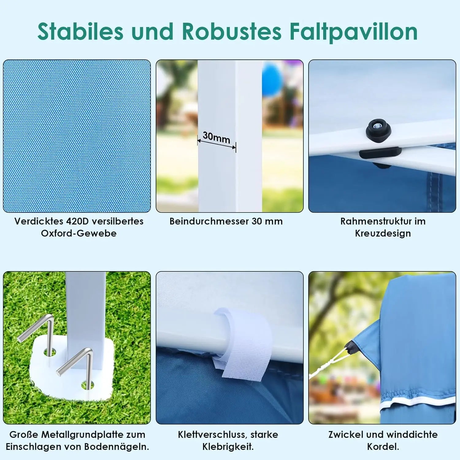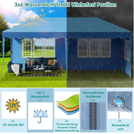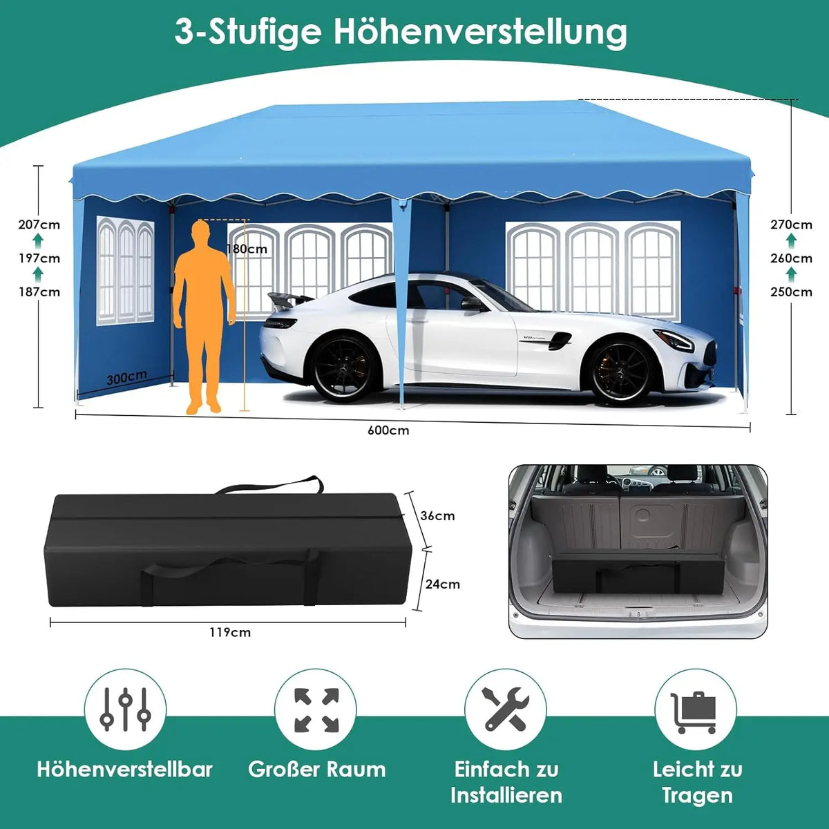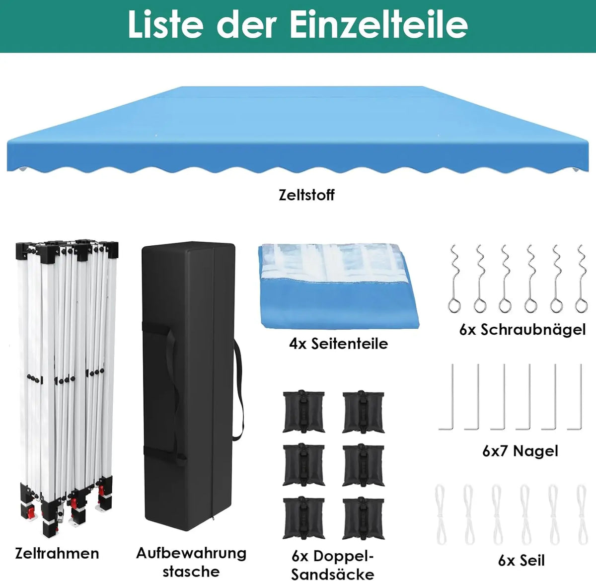 - 3x6m Vandeniui Atsparus Išsiskleidžiantis Gazebo (mėlynas)