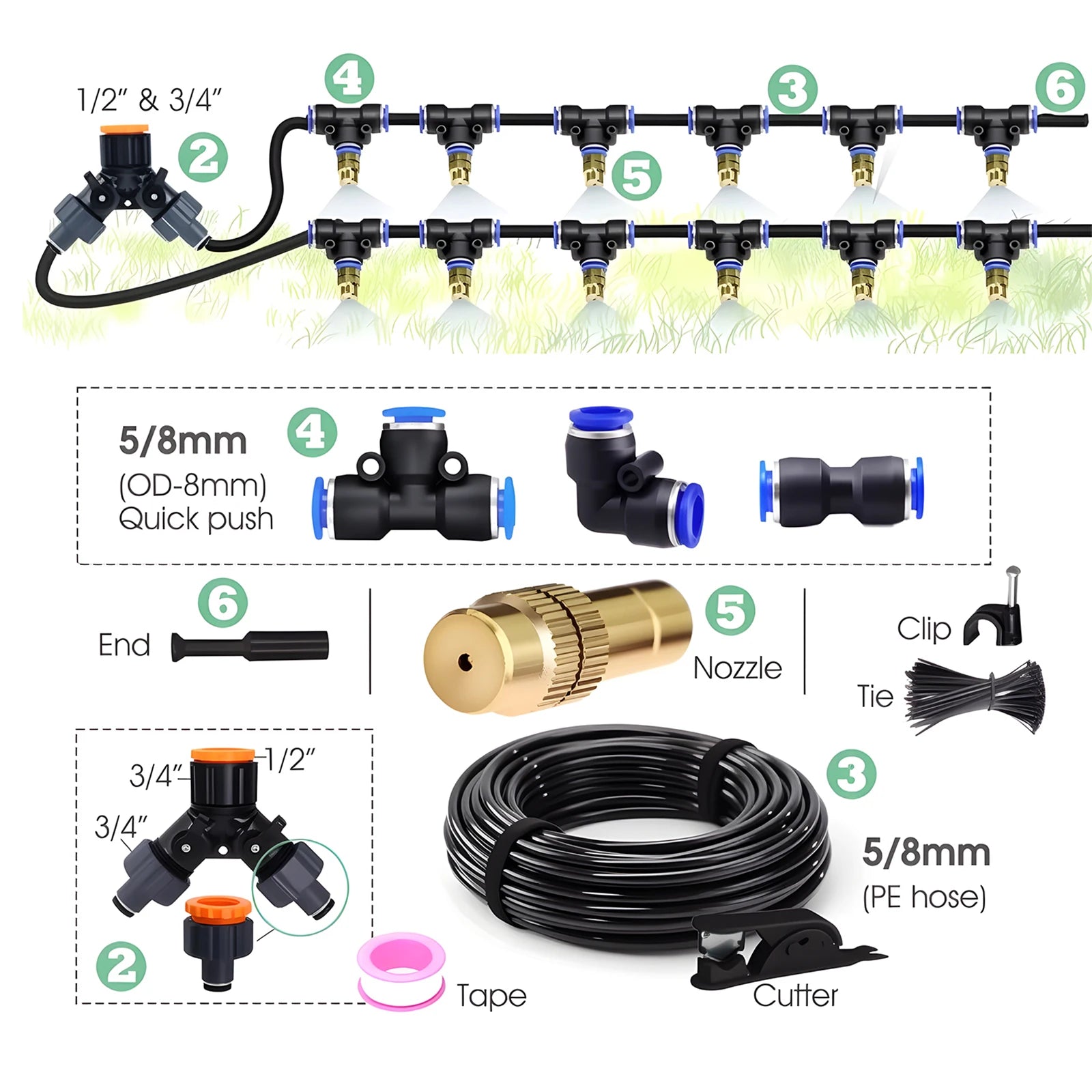 Meet the Jugacool 30M 5 To 8mm Hose Brass Nozzle Atomizing Irrigation System — a versatile, durable solution designed to keep your outdoor spaces lush and healthy. Whether you’re watering a vegetable patch, misting a greenhouse, or cooling a terrace, this system adapts to water pressures and garden sizes to deliver precise, even coverage with minimal waste.