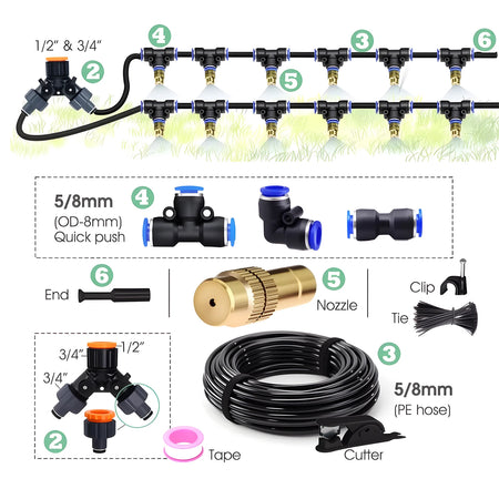 Versatility is the hallmark of this atomizing irrigation system. It’s ideal for cooling on hot days, misting to boost humidity for greenhouse plants, and precise watering for vegetables, flowers, and lawns. The kit is easy to set up and built to endure outdoor conditions.