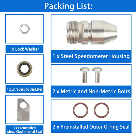 - Įtraukta: O-žiedas, metalinis sandariklis, varžtai, poveržlė ir greičio matuoklio pavaros korpuso komponentai