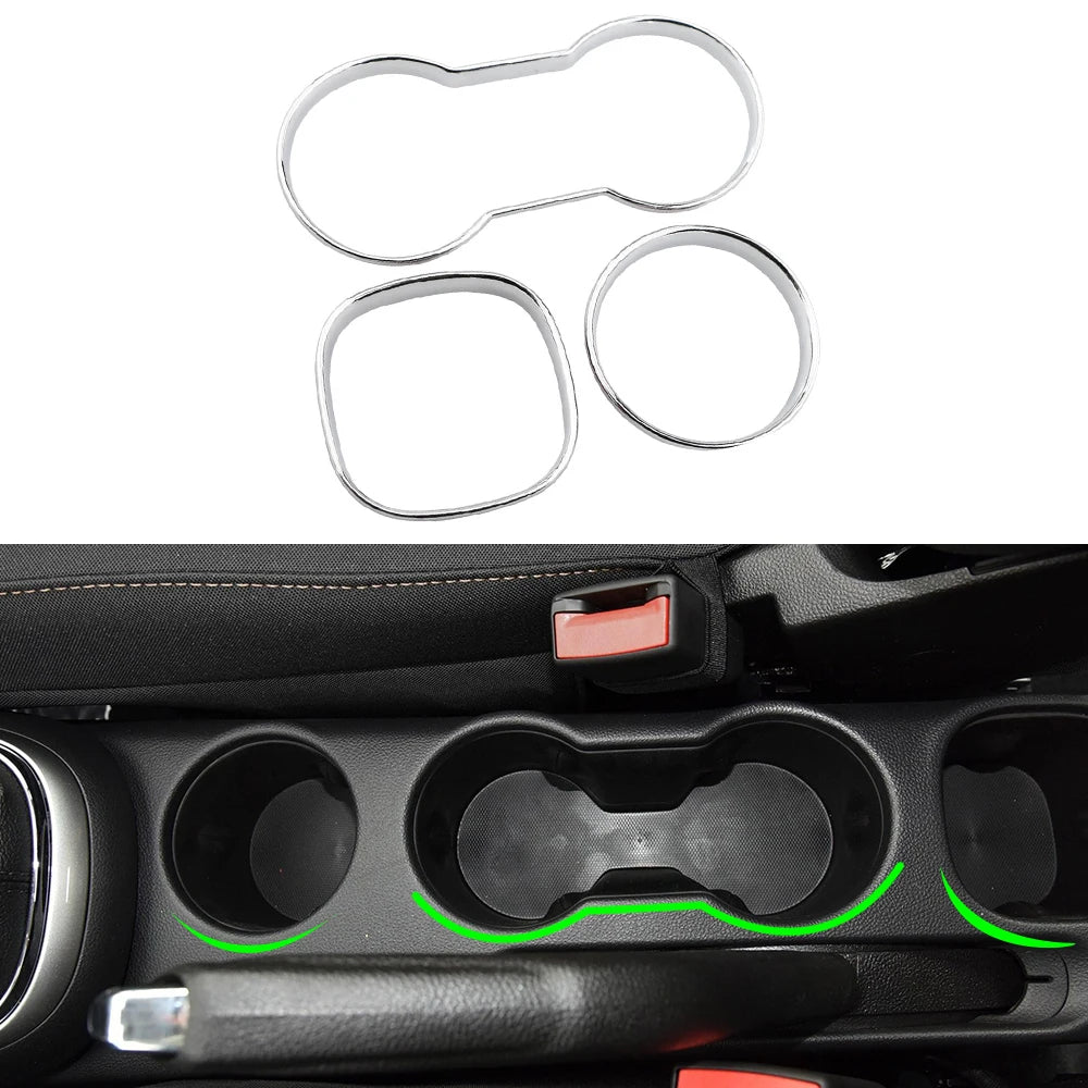 Puodelių laikiklio panelės apdailos lipdukas Chevrolet Trax 2014-2018, ABS chromo, 3 dalių rinkinys