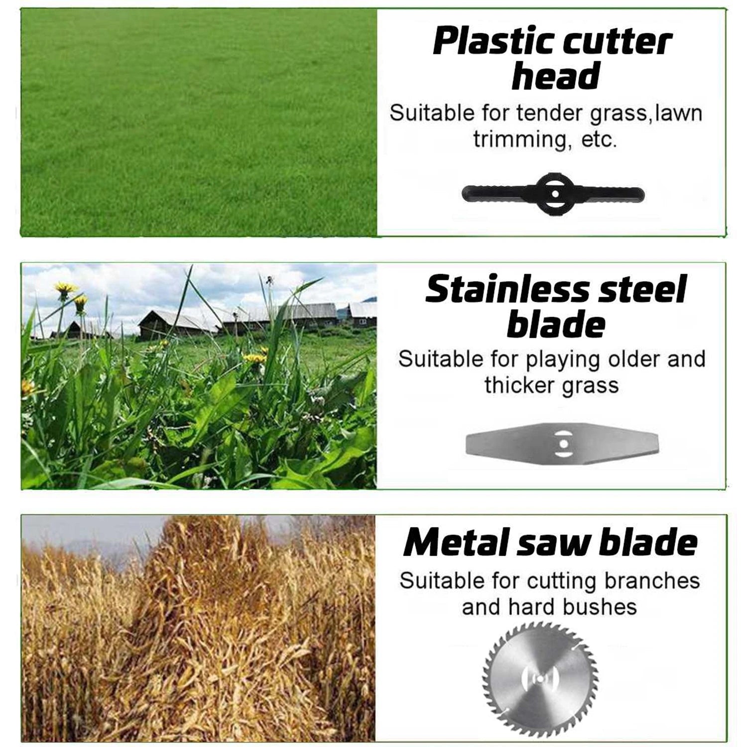 - Įtrauktas į paketą: Žoliapjovės įrenginys su teleskopine lazda, reguliuojama rankena, pjovimo galva, vartotojo vadovas, pagrindiniai surinkimo įrankiai