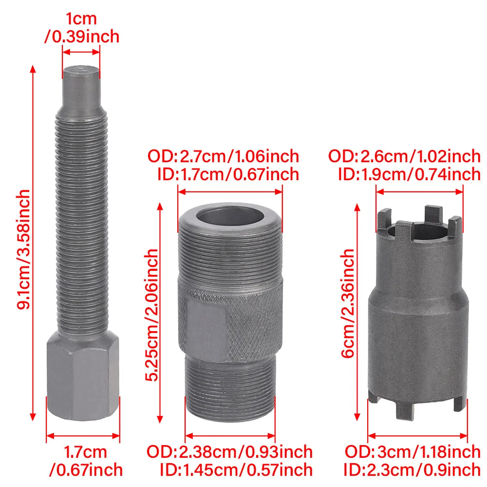 Suprojektuota praktiškam, parduotuvėje paruoštam priežiūrai, Honda ATC 110 sankabos užrakto veržlės ir smagračio traukimo rinkinys iš Hulit yra kompaktiškas dviejų dalių įrankių rinkinys, sukurtas sankabos darbams ir smagračio nuėmimui Honda ATC modeliuose ir plačiai naudojamose GY6 varikliuose. Šis rinkinys apima 20mm ir 24mm užrakto veržles bei 24mm ir 27mm smagratius, pakeičiant Honda specialius įrankius: #07716-0020100 ir 07vma-mbb0100-101. Naudokite jį, kad atlaisvintumėte užrakto veržles, įdiegtumėte arba nuimtumėte sankabą ir atskirtumėte magneto smagratį nuo alkūninio veleno su minimalia žalos rizika. Jis suderinamas su 50cc–150cc varikliais iš Roketa, Jonway, Taotao, Znen, SSR, Yerf-Do ir kitų, įskaitant Honda ATC 110/125 seriją ir susijusius ATC bei mažus purvo motociklus.