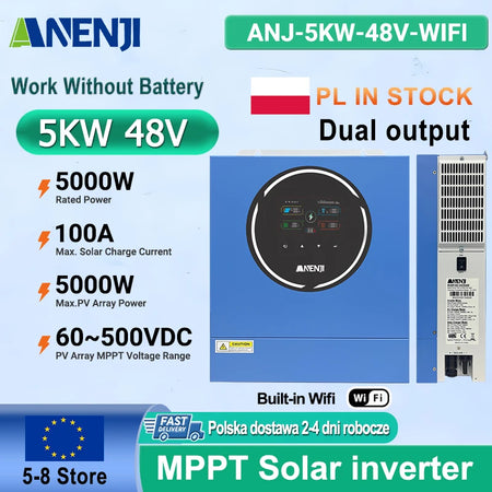 - ANENJI 5KW 48V Dual Output Hybrid Solar Inverter with MPPT 100A