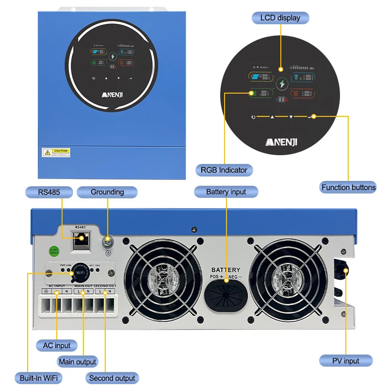 - ANENJI 5KW 48V Hybrid Solar Inverter