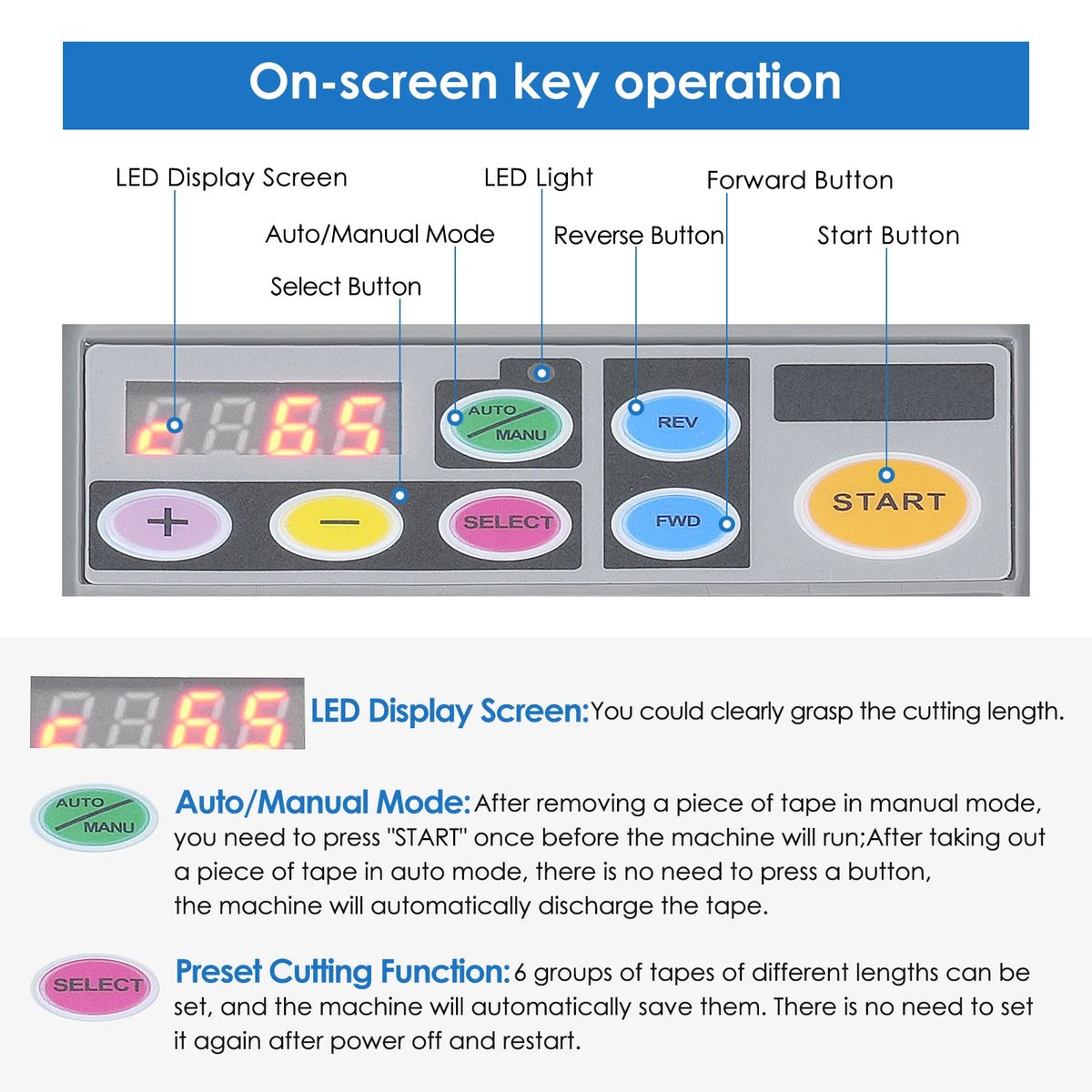 - Taupykite laiką ir gerinkite nuoseklumą iš anksto nustatydami šešis pjaustymo ilgius; greitai keiskite užduotis.