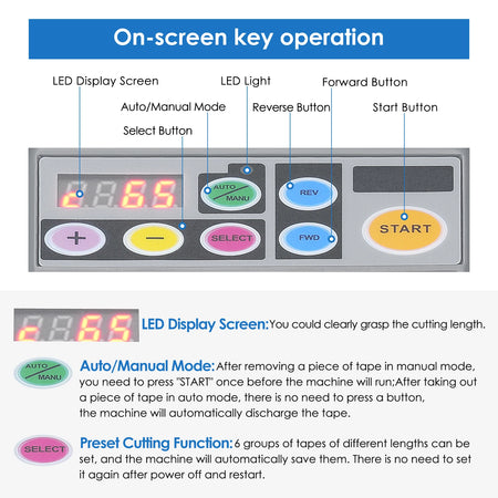 Automatinis juostos pjaustytuvas su rankiniu automatinio režimu iš Jugacool yra universalus, laiką taupantis įrankis, sukurtas užimtiems pakavimo stalams, dirbtuvėms ir amatų studijoms. Jis veikia automatinėje arba rankinėje režimuose su šešiais iš anksto nustatytais pjaustymo ilgiais, užtikrindamas nuoseklius rezultatus kiekvieną kartą. Jis gali pjaustyti vieną juostos ritinį arba apdoroti du ritinius vienu metu, pagreitindamas partijų darbus ir išlaikydamas jūsų pakavimą tvarkingą ir vienodą. Intuityvus LED ekranas aiškiai rodo pasirinktą ilgį, todėl galite greitai nustatyti ir stebėti pažangą akimirksniu. Neturint jokių apribojimų vidiniam juostos ritinio skersmeniui, šis dozatorius tinka plačiam branduolių ir medžiagų asortimentui – nuo standartinių pakavimo juostų iki stiklo audinio, dvipusės, siūlų, maskavimo, apsauginės plėvelės, aliuminio folijos ir kt. Visi elektroniniai ir mechaniniai įrenginiai, prietaisai ir mašinos, parduodami InterCyprus ES šalyse, yra CE sertifikuoti ir turi dvejų metų garantiją. Teikiame kokybiškas ir patikimas paslaugas nuo 2002 m. intercyprus.com.