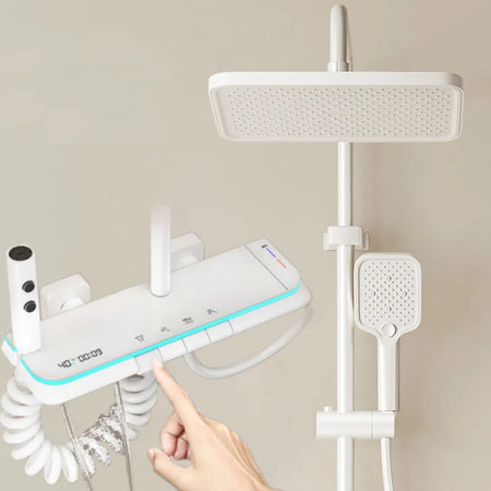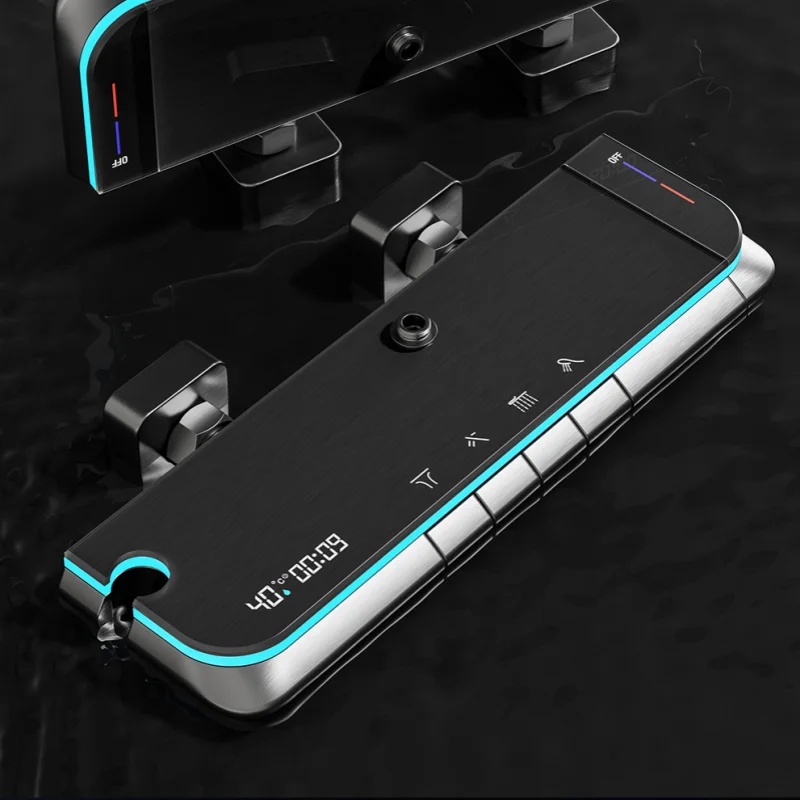 Dušo sistema su žalvario branduoliu ir chromo apdaila, grūdinto stiklo kvadratinis dizainas, skaitmeninis ekranas