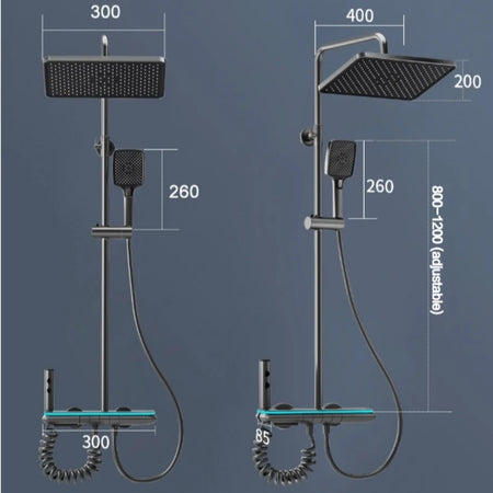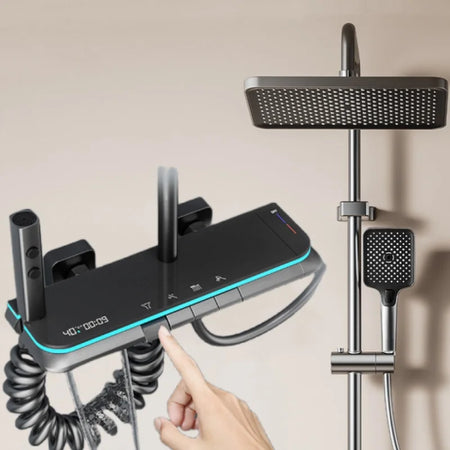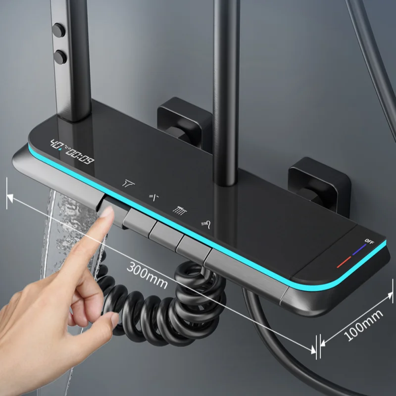 Pakelkite savo kasdienę rutiną su Vonios Prabangos Dušo Sistema su Šviesomis ir grūdinto stiklo įkvėptu dizainu. Šis pilnas rinkinys suteikia prabangų chromo apdailą, žalvario branduolį ir kvadratinę siluetą, kad sukurtų modernų, SPA tipo vaizdą jūsų vonioje. Sistema turi praktišką skaitmeninį ekraną su pianino klavišais, leidžiančiais lengvai skaityti temperatūrą ir srautą, nors tai nėra išmanusis prietaisas. Pastaba: dušo galvutė yra ABS plastikas, o kad ekranas veiktų tinkamai, vandens slėgis turi būti ne mažesnis kaip 0,2 MPa.