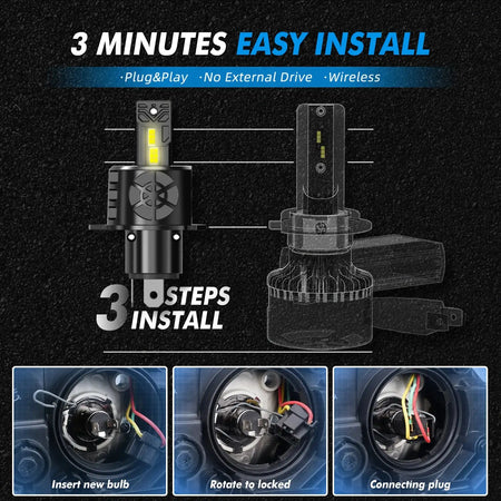 - Paprastas atnaujinimas: sukurtas įprastiems pagrindams (H4, H7, H11, 9005/ HB3, 9006/ HB4, 9012, HIR2); užtikrinkite tinkamą pritaikymą ir sureguliuokite spindulio modelį po montavimo.