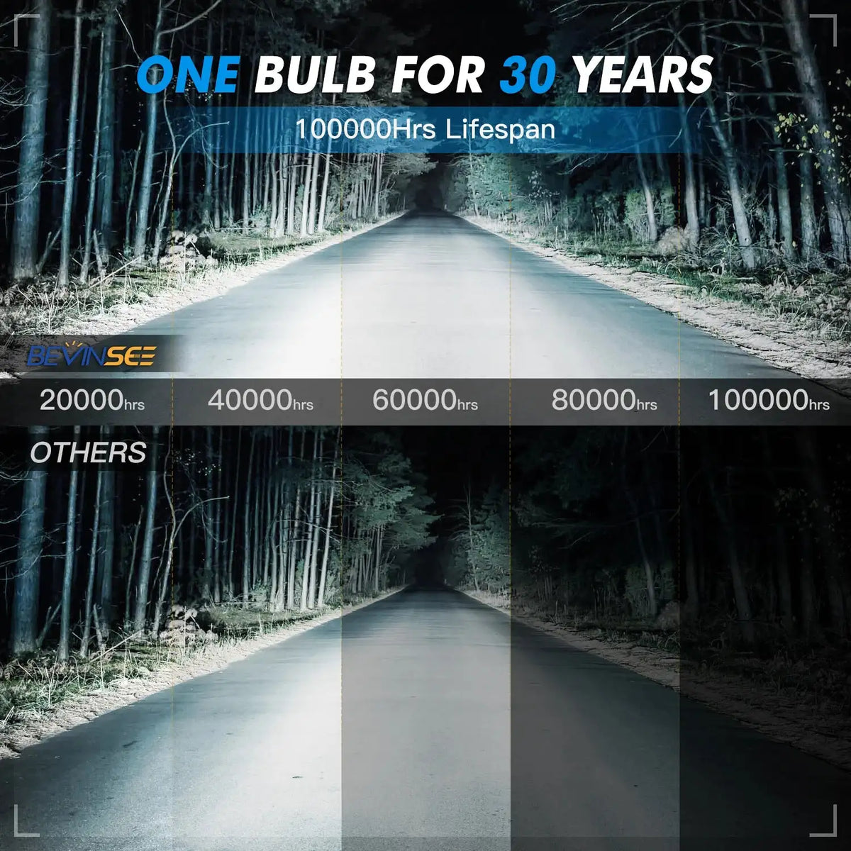 Bevinsee 120W LED žibintų rinkinys (6000K) keliems lemputių dydžiams, įskaitant H7/H4/H11 variantus.