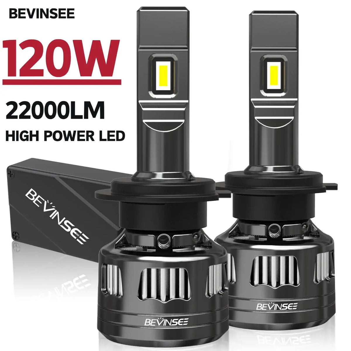 Bevinsee 120W LED žibintai 6000K H7 H4 H11 12V CANbus