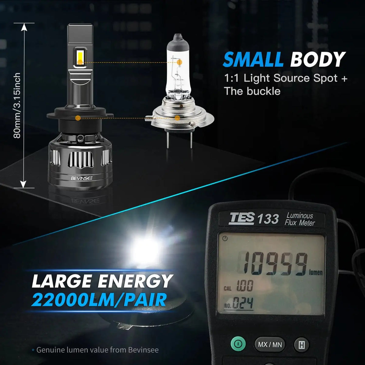 Bevinsee 120W LED žibintai 6000K H7 H4 H11 12V CANbus suteikia galingą, aiškų dienos šviesos apšvietimą, kad naktinis vairavimas būtų saugesnis. Su CSP-3570 LED karoliukais, šios lemputės sukurtos ryškumui, efektyvumui ir ilgaamžiškumui. Jos yra sukurtos, kad tilptų į kelias lemputių konfigūracijas, įskaitant H7, H4, H11, H1, H3, H8, H9, 9012, HB3/9005 HB4/9006, todėl tai yra universalus atnaujinimas daugeliui transporto priemonių, įskaitant Volkswagen Golf modelius nuo 2014 iki 2019 metų. Su 6000K spalvų temperatūra, gaunate aiškią, baltą šviesą, kuri pagerina matomumą, sumažina akių nuovargį ir padeda greičiau pastebėti pavojus. Sertifikuoti CE ir RoHS, šie žibintai atitinka aukštus saugos ir aplinkosaugos standartus, o jų CANbus suderinamumas sumažina prietaisų skydelio įspėjimo kodus.