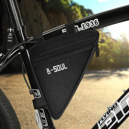 Atsparus vandeniui dviračio trikampis krepšys su dideliu užtrauktuku, patvarus poliesteris
