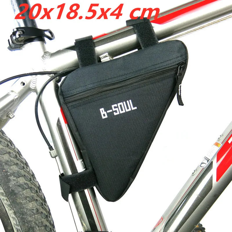 Vandeniui atsparus dviračio rėmo krepšys yra suderinamas su MTB, kalnų dviračiais ir kelių dviračiais, ir tinka rėmams, kurių apimtis yra 3–9 coliai. Jo matmenys yra 20 cm x 18,5 cm x 4 cm, o svoris tik 55 g, išlaikant mažą svorį, tuo pačiu teikiant praktišką saugojimą. Pasirinktinai juodos, juodos-raudonos, juodos-mėlynos ir geltonos-žalios spalvos, kad atitiktų jūsų dviračio spalvą ir stilių.