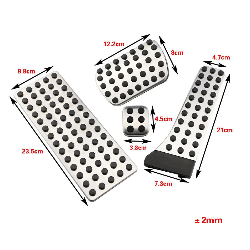 - Montavimas: Dujų pedalų dangtelis: tiesiog uždėkite ant originalaus dujų pedalo. Stabdžių pedalų dangtelis: nuimkite gumą nuo originalaus stabdžių pedalo, tada uždėkite dangtelį.