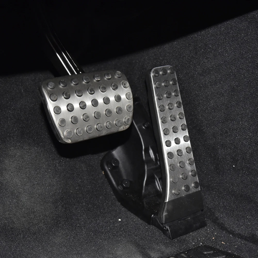 Atnaujinkite savo Mercedes-Benz C, E, S klasės interjerą su šiais nerūdijančio plieno pedalų dangteliais dujų ir stabdžių pedalams. Pagaminti iš patvaraus nerūdijančio plieno su elegantišku sidabriniu paviršiumi, jie suteikia sportiškesnį, prabangesnį išvaizdą, tuo pačiu padėdami apsaugoti jūsų originalius pedalus nuo kasdienio nusidėvėjimo. Dujų pedalų dangtelis tiesiog užsideda ant esamo pedalo, o stabdžių pedalų dangtelis reikalauja nuimti gumą nuo originalaus stabdžių pedalo prieš montuojant naują dangtelį. Sukurti atlaikyti kasdienį naudojimą, šie dangteliai atsparūs korozijai ir lengvai valomi, kad išlaikytų tą blizgantį išvaizdą.