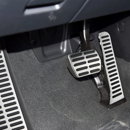 - Dujų pedalų dangtelis montuojamas greitai naudojant paprastą užsegimo metodą; stabdžių pedalų dangtelis reikalauja nuimti originalaus stabdžių pedalo gumą prieš montavimą, kad būtų užtikrintas tvirtas pritaikymas.