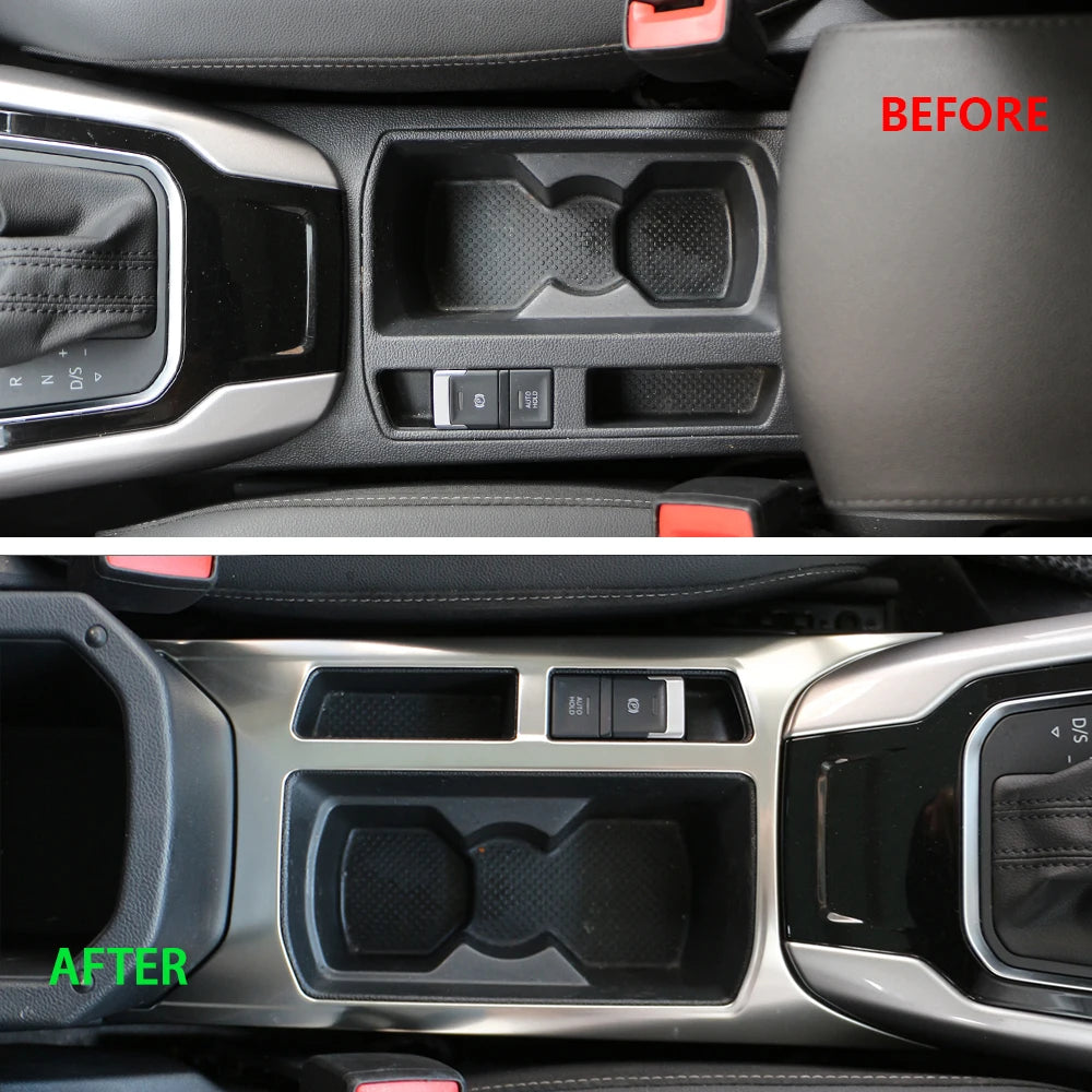 Volkswagen T-Roc Puodelių Laikiklio Panele Lipdukas ABS Nerūdijančio Plieno Sidabrinė Juoda