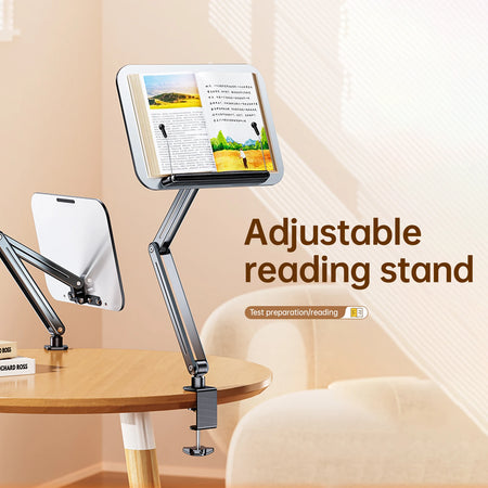 Skirta skaitytojams, kurie nori ergonomiško komforto ir universalaus naudojimo, stalo knygų laikiklis su pakabinamąja ranka siūlo 360° sukimosi galimybę, 180° sulankstomą panelę ir 270° kairėn-dešinėn sukiojamą panelę, kad tiksliai pritaikytumėte savo žiūrėjimo kampą. Šis kompaktiškas, patvarus laikiklis idealiai tinka knygoms, 14-17,3 colių nešiojamiesiems kompiuteriams, planšetėms ir kt.