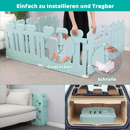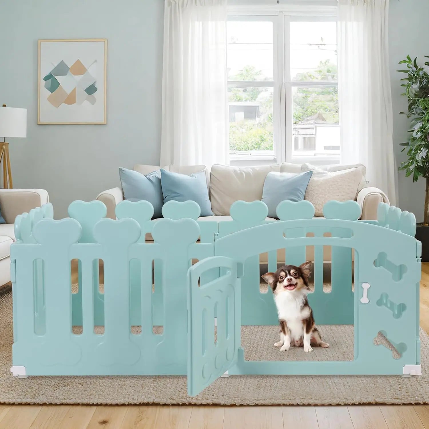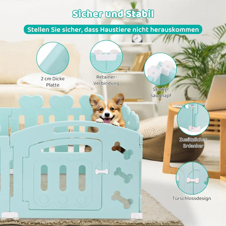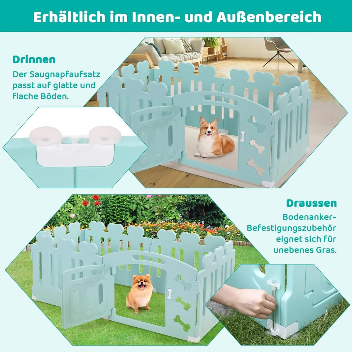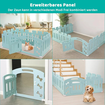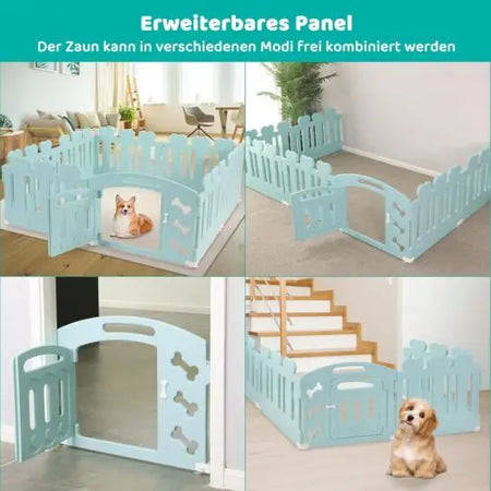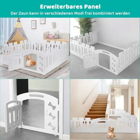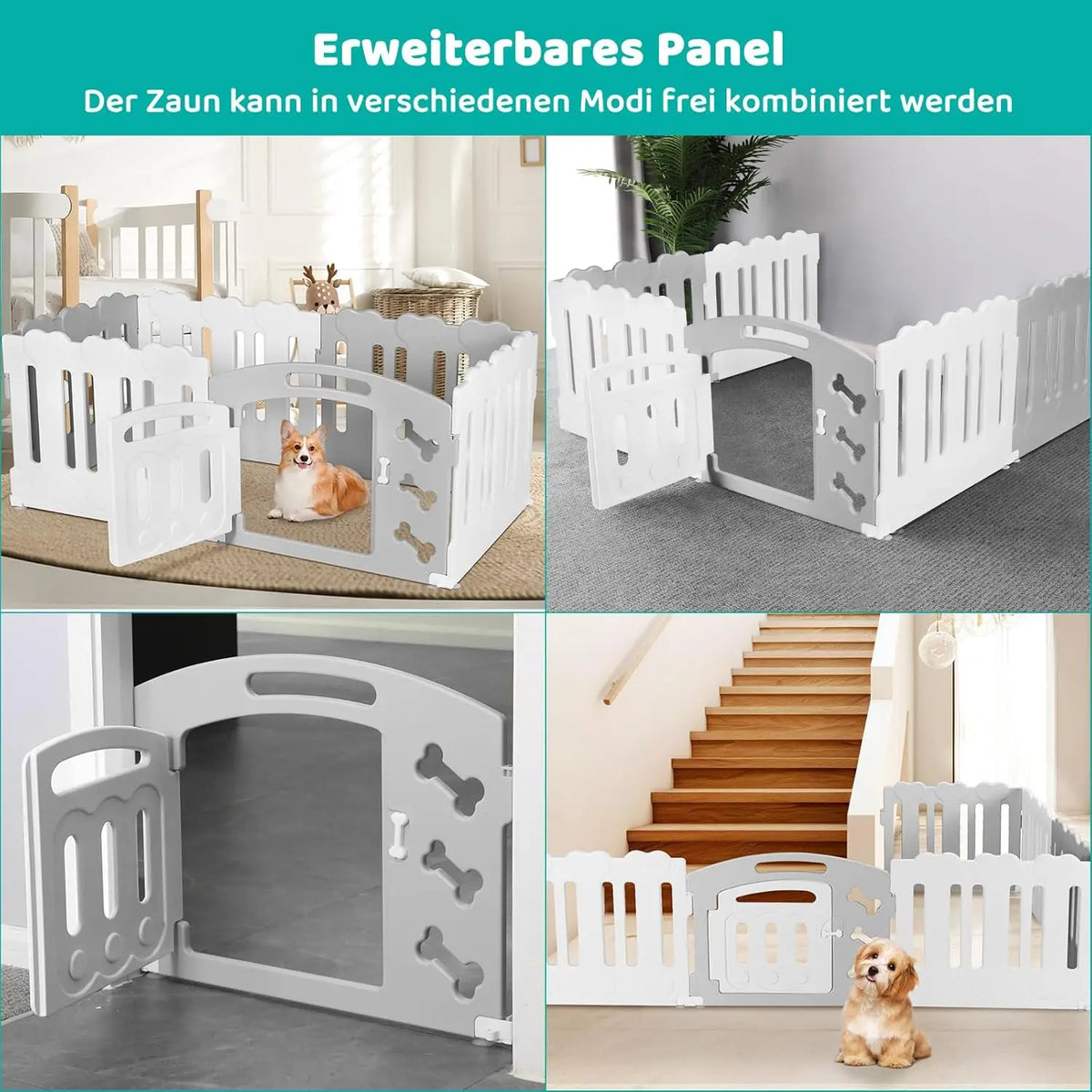 Naudojamas tiek viduje, tiek lauke, šis šuniukų žaidimų narvas prisitaiko prie jūsų erdvės, siūlydamas kelis išdėstymus: 78 × 78 cm, 78 × 155 cm arba 155 × 155 cm. Jis tinka mažiems ir vidutiniams augintiniams (pečių aukštis iki 35 cm ir svoris iki 10 kg), tokiems kaip Maltiečiai, Mopsai, Prancūzų buldogai, triušiai ir net kai kurie katės ar graužikai. Sulankstoma konstrukcija palengvina surinkimą, saugojimą ir transportavimą—puikiai tinka namams, butams, automobilių kelionėms ar stovyklavimui.
