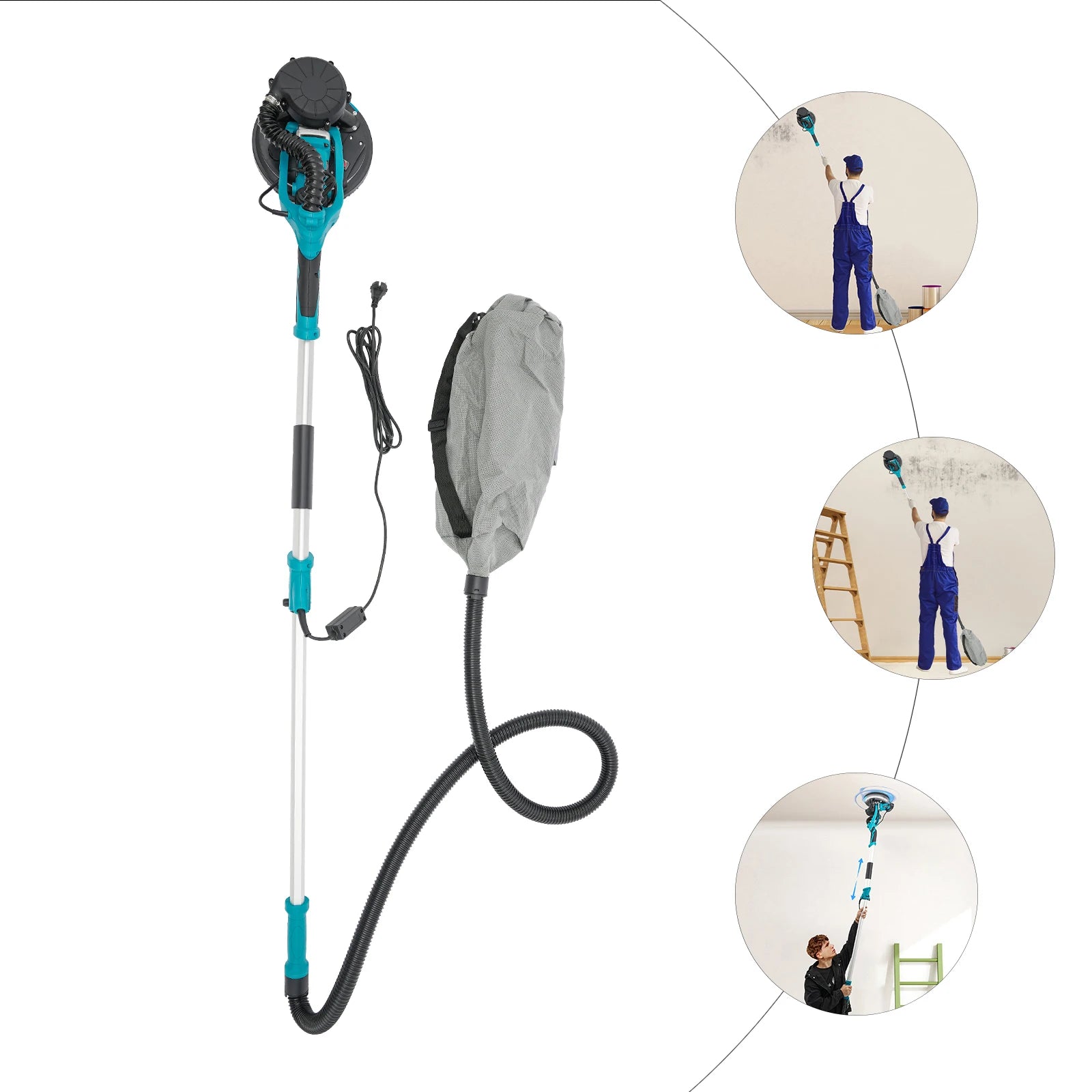 Privalumai: Šis šlifuoklis supaprastina šlifavimo užduotis, derindamas reguliuojamą greitį ir efektyvų dulkių surinkimą, sumažindamas valymo laiką ir gerindamas apdailos kokybę. Jo ergonomiška konstrukcija sumažina vartotojo nuovargį, todėl sienų paruošimas tampa greitesnis ir nuoseklesnis tiek mėgėjams, tiek profesionalams.