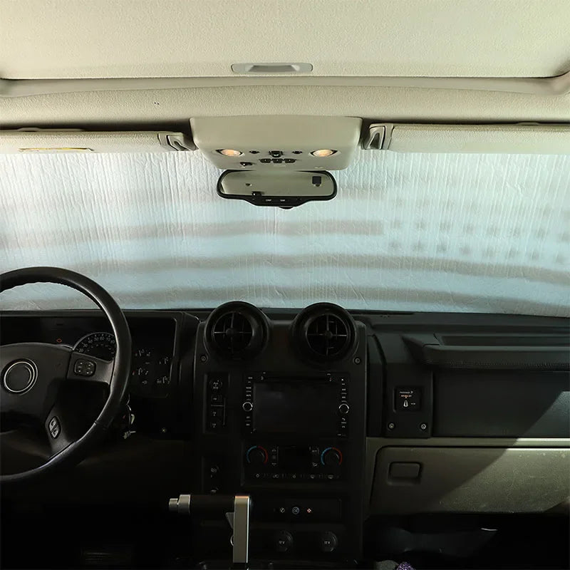 Apsaugokite savo Hummer H2 interjerą nuo stiprių saulės spindulių ir karščio su Hummer H2 2003-2007 Priekinio Langų Saulės Šalmas. Pagamintas iš aukštos kokybės aliuminio folijos, šis atspindintis saulės šalmas blokuoja UV spindulius, mažina kabinos temperatūrą ir padeda apsaugoti jūsų prietaisų skydelį ir apmušalus nuo saulės pažeidimų. Sukurtas 2003–2007 H2 modeliams, jis greitai montuojamas su stipria automobiline lipnia juosta, kad būtų užtikrintas saugus, be įrankių montavimas.