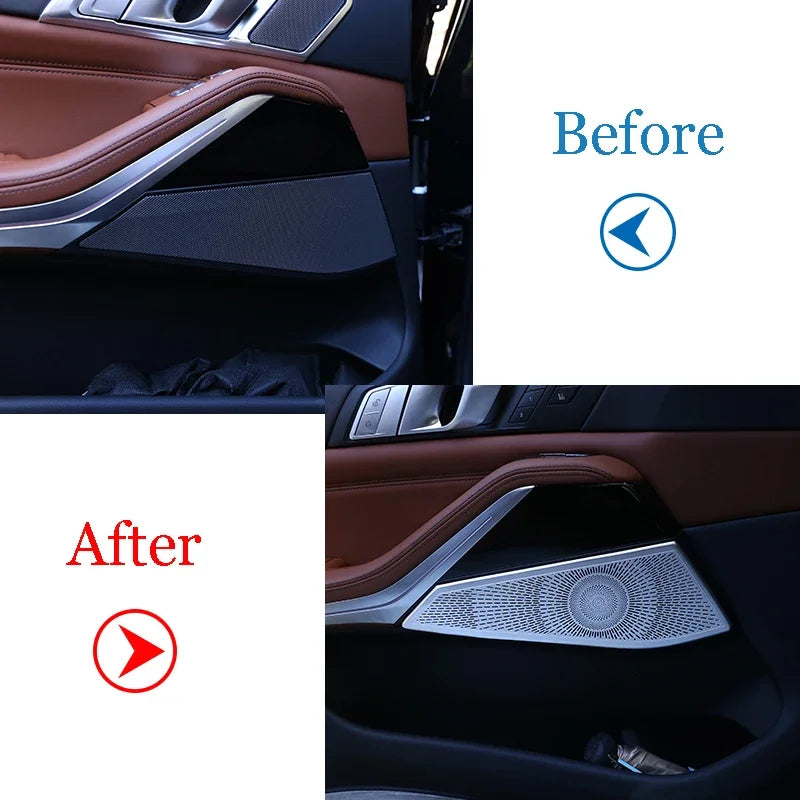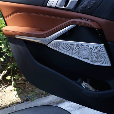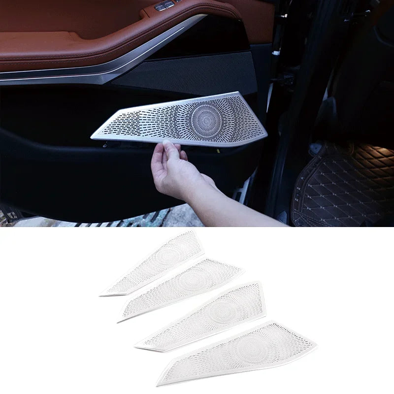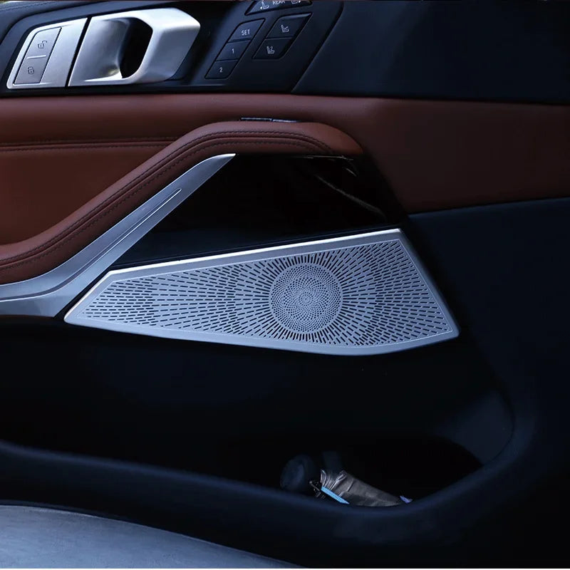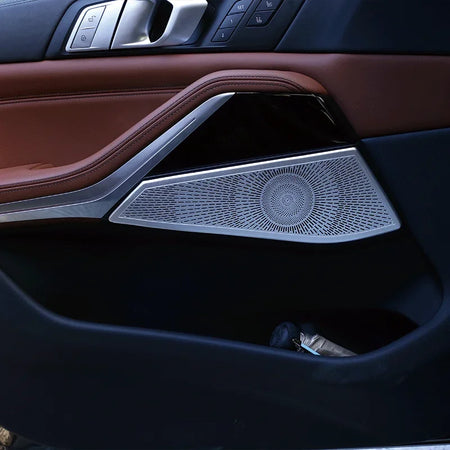 Durų garsiakalbio dangtelio apdailos etiketė BMW X5 X7 2019-2022 modeliams aliuminio lydinys sidabrinė