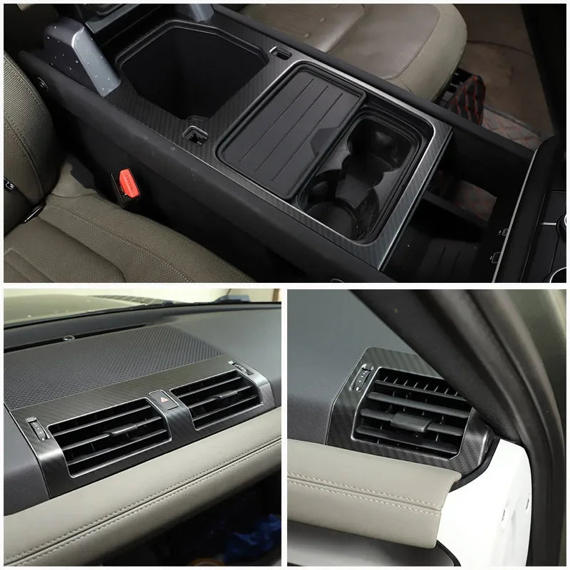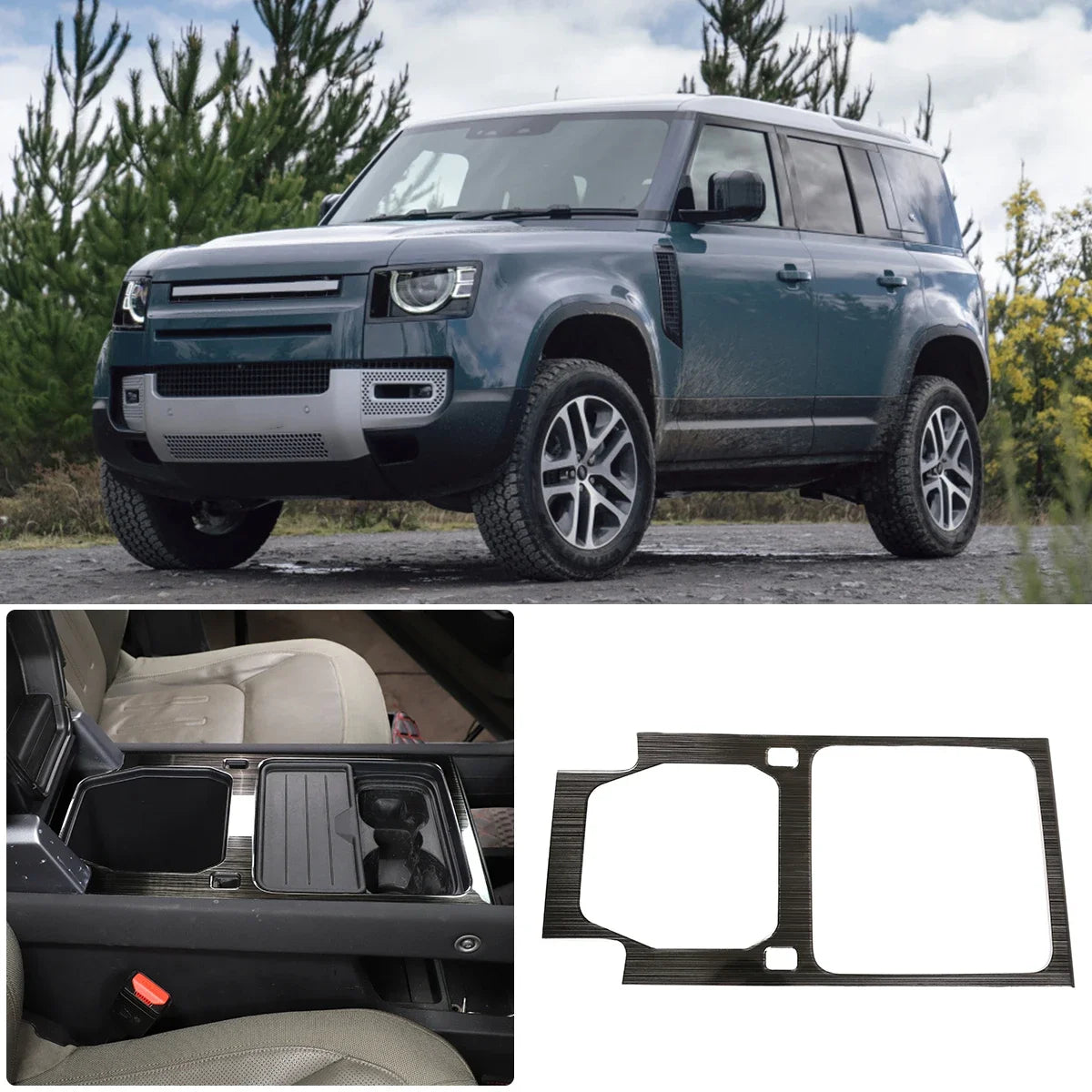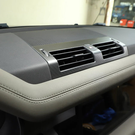 - Pagerina vidaus estetiką su elegantiška anglies pluošto/juoda apdaila, kuri papildo Defenderio kabiną.