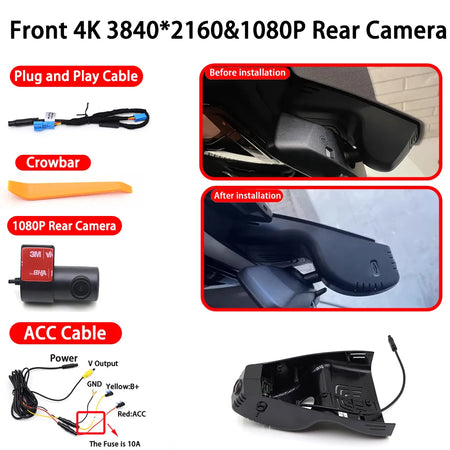 - Mėgaukitės plug-and-play įdiegimu, prijungdami prie automobilio lietaus jutiklio arba šviesos maitinimo laido, išlaikydami OEM išvaizdą, kol maitinote dash cam.