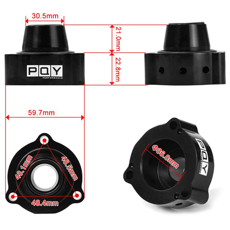 Skirtas plačiam VAG turbo taikymų spektrui, adapteris tinka Audi A3 1.4/1.8/2.0 TSI/FSTi Turbo ir daugybei susijusių modelių, užtikrindamas universalią sprendimą našumo entuziastams. Dviejų stūmoklių dizainas suteikia sklandų, prognozuojamą padidėjimo valdymą, o 25 PSI veikimo reitingas tinka įvairioms derinimo konfigūracijoms. Su korozijai atspariu poliruotu aliuminio korpusu ir 1" (25 mm) įleidimu, jis sujungia patvarumą su švariu, našumą orientuotu išvaizda po gaubtu.