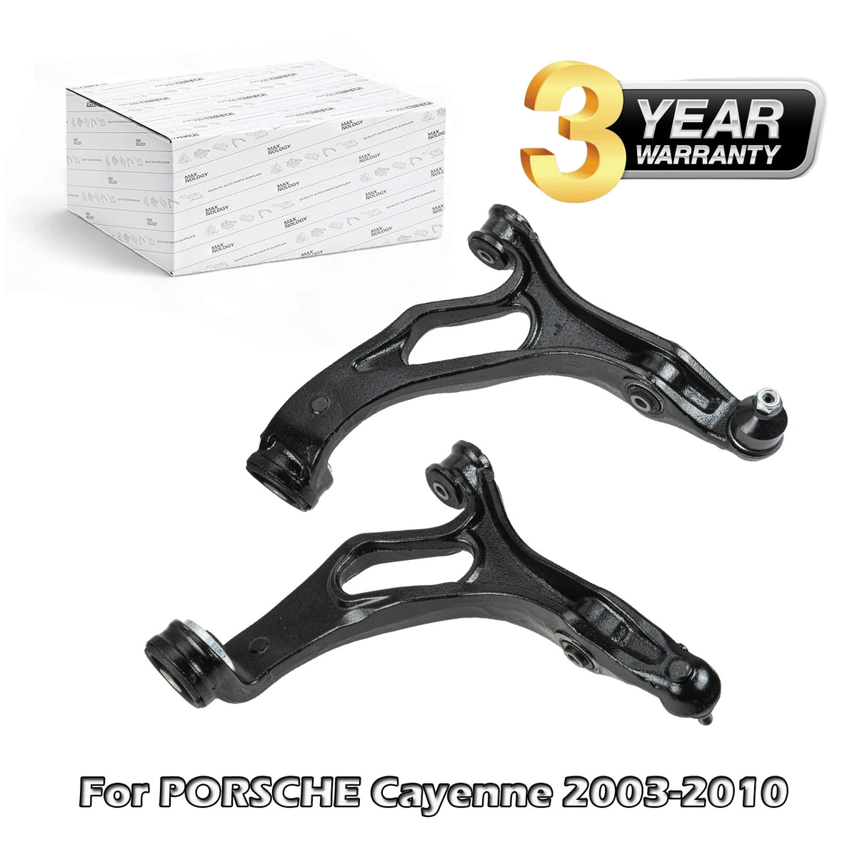 Atnaujinkite savo Porsche Cayenne 9PA priekinę pakabą su Porsche Cayenne 9PA Priekinės Apatinės Valdymo Svirties Asamblėja su Kamuoliniu Jungtimi iš MAX NOLOGYCone. Ši pilna pora skirta Cayenne 9PA modeliams nuo 2003 iki 2010 metų ir apima tiek kairiąją, tiek dešiniąją apatinę valdymo svirtį su integruotais kamuoliniais jungtimis ir gumos laikikliais, užtikrinančiais saugų ir tylų važiavimą. Pagamintos iš tvirto plieno ir liejimo plieno, šios svirties atitinka OEM dydį ir našumą su OEM numeriais 95534101760/61 (Kairė) ir 95534101860/61 (Dešinė). Jos pritaikytos priekinės ašies montavimui, užtikrinant tikslią pakabos geometriją ir atnaujintą vairo jausmą po nusidėvėjimo ar smūgio.