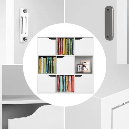 Baltas 9 kubų saugojimo vienetas knygų lentyna su 5 durimis 90x29x90