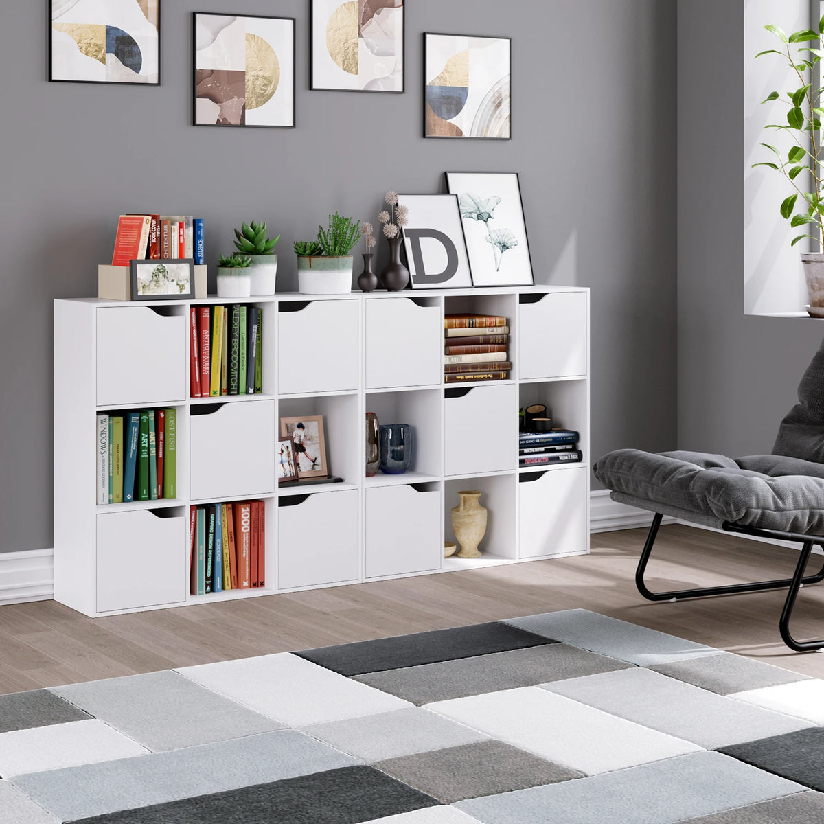 Susipažinkite su Balta 9 Kubų Saugojimo Vienetu Knygų Lentyna Su 5 Durimis, stilingu ir praktišku saugojimo sprendimu, sukurtu supaprastinti jūsų erdvę. Išmatavimai 90x29x90 cm, šis vienetas sujungia minimalistinį baltą dizainą su universaliu saugojimu: devynios pertvaros knygoms, dekorui ar augalams, plius penkios durys, kad netvarka būtų tvarkingai paslėpta. Jis puikiai tinka svetainėse, miegamuosiuose, koridoriuose, valgomojo erdvėse ir darbo vietose, o jo modulinis išvaizda puikiai veikia kaip kambario daliklis, kai sujungiate du vienetus.