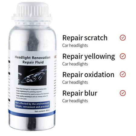 - Talpa: 800 ml žibintų remonto skysčio (už butelį; skirtas 3–4 naudojimams)