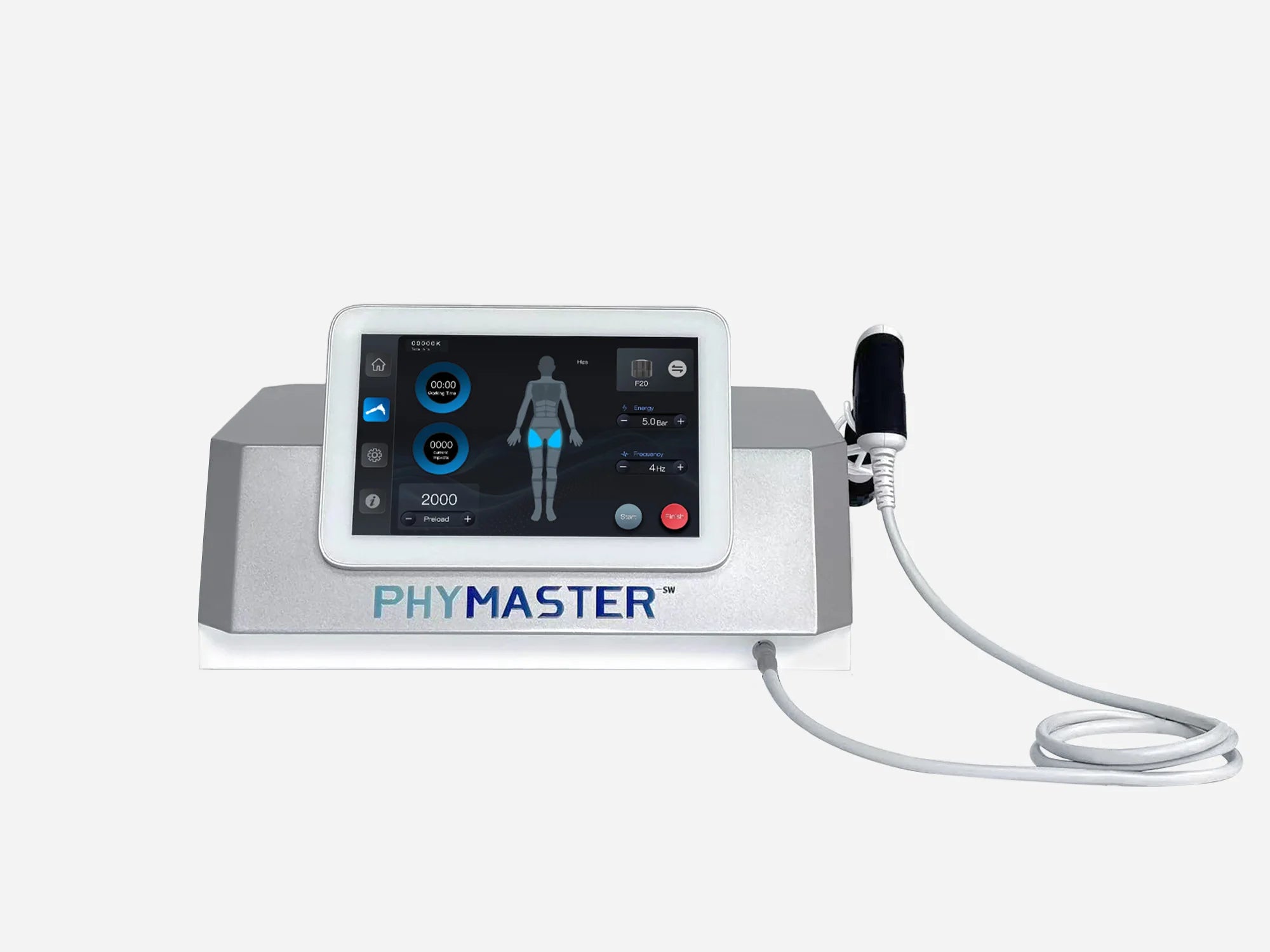 - Paprastas valdymas su dideliu HD ekranu, kad aiškiai kontroliuotumėte ir stebėtumėte terapijos sesijas; naudokite reguliuojamą šoko bangų energiją, kad pritaikytumėte gydymą.