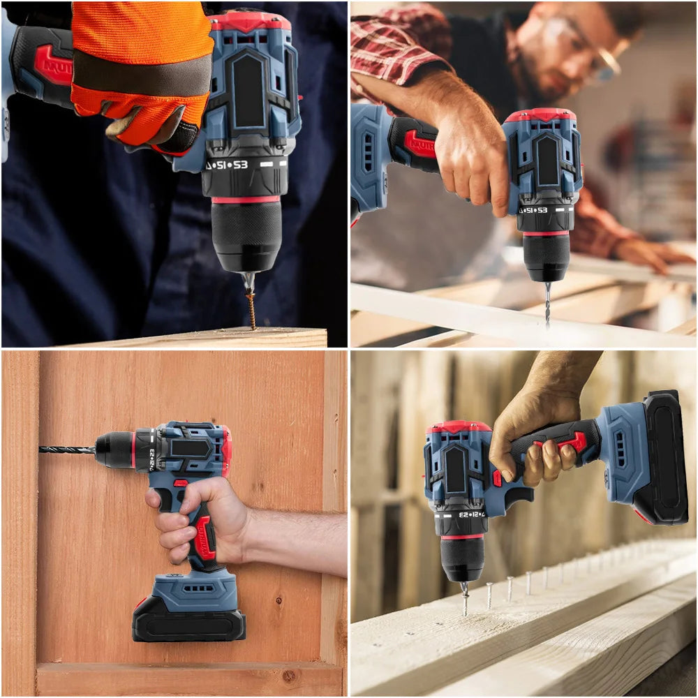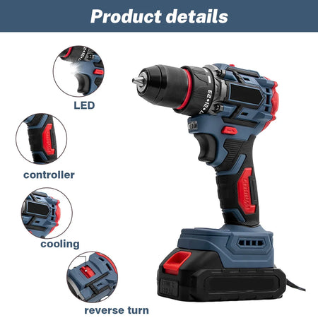 Susipažinkite su Didelio Sukimo momento Belaidžiu Bešepetėliu Gręžtuvu 18V — galingu įrankiu, sukurtu rimtiems „Pasidaryk pats“ ir profesionaliems projektams. Šis gręžtuvas siūlo galingą 500W bešepetėlį variklį, užtikrinantį patikimą veikimą, kartu su didelės talpos Makita suderinama baterija, kad pailgintumėte darbo laiką tarp įkrovimų. Jo 2 greičių sistema (0-450 ir 0-1650 RPM) suteikia jums tikslią kontrolę varžtų sukimo ir greito gręžimo metu, o 23+1 pavarų išdėstymas lengvai tvarko sunkius medžiagas. Tikslus be raktų chuck užtikrina greitus antgalių keitimus ir tvirtą sukibimą, o ergonomiška minkšta rankena sumažina nuovargį ilgesnių sesijų metu. Integruota LED darbo šviesa įsijungia, kai reikia papildomo matomumo, net ir ankštose ar prastai apšviestose vietose. Priekinis ir atgalinis veikimas yra tik vieno paspaudimo atstumu, todėl varžtų sukimas ir tvirtinimo elementų pašalinimas yra lengvas. Viskas tvarkingai telpa į tvirtą pūsto plastiko nešimo dėžę, kad būtų saugu laikyti ir transportuoti. Tikras sukimo momentas svyruoja nuo 15 iki 40 NM, suteikdamas jums galią, kurios reikia įvairioms medžiagoms ir užduotims. Baterijos laikas įvertintas 50–60 minučių be apkrovos, o įkrovimo laikas yra apie 2,5 valandos. Energija tiekiama per Makita bateriją, kad būtų užtikrinta suderinamumas ir našumas.
