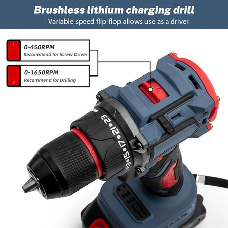Didelis sukimo momentas bevielis bešepetėlinis gręžtuvas 2 greičių metalinis chuck 18V