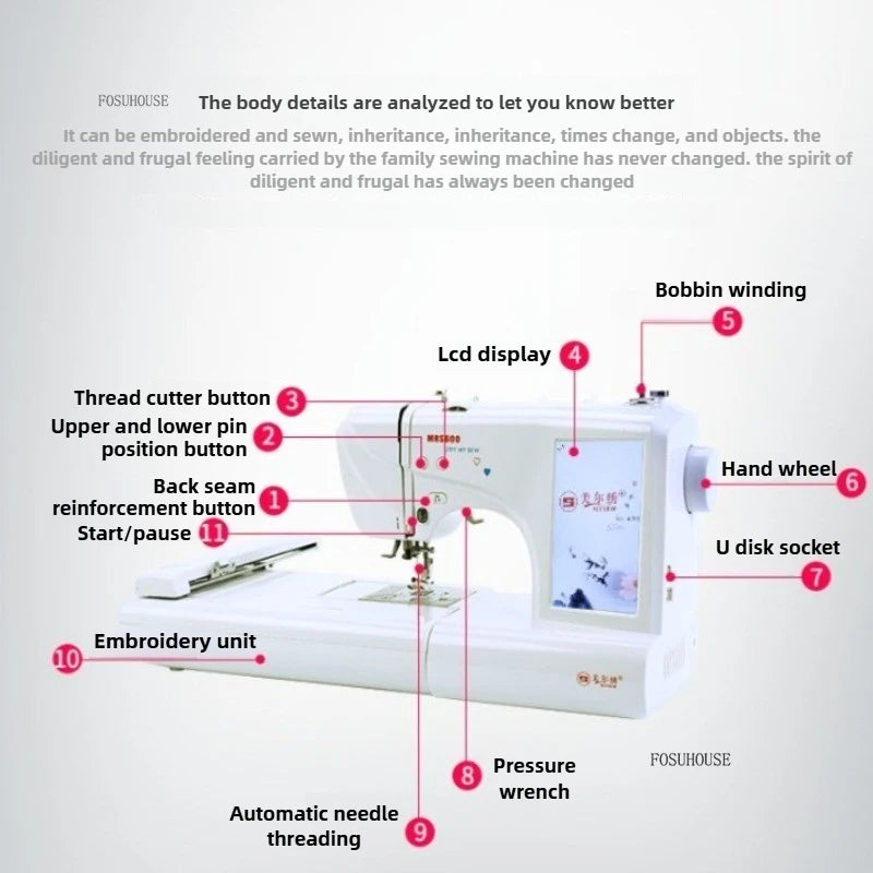 Dviejų įtampų namų siuvimo ir siuvinėjimo mašina