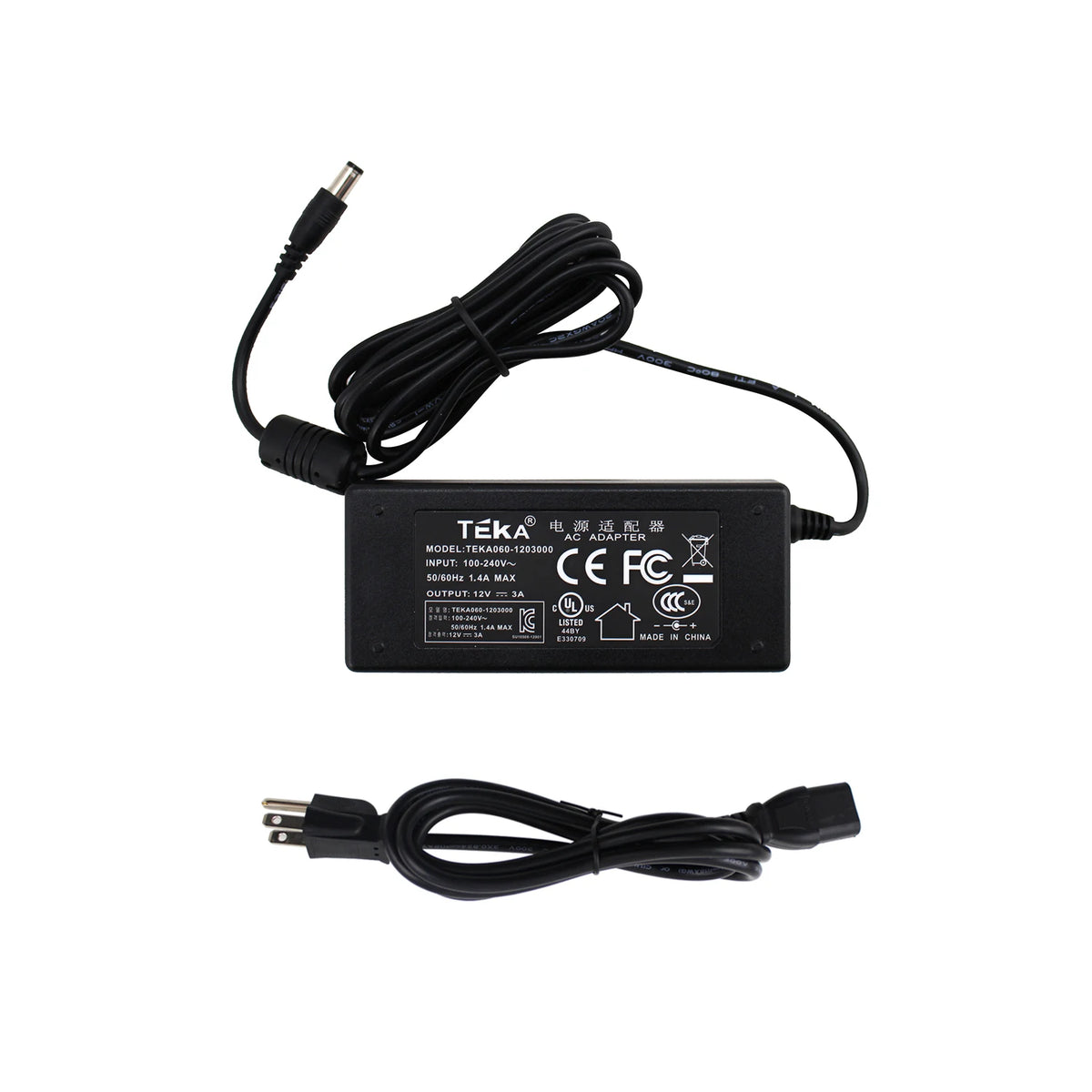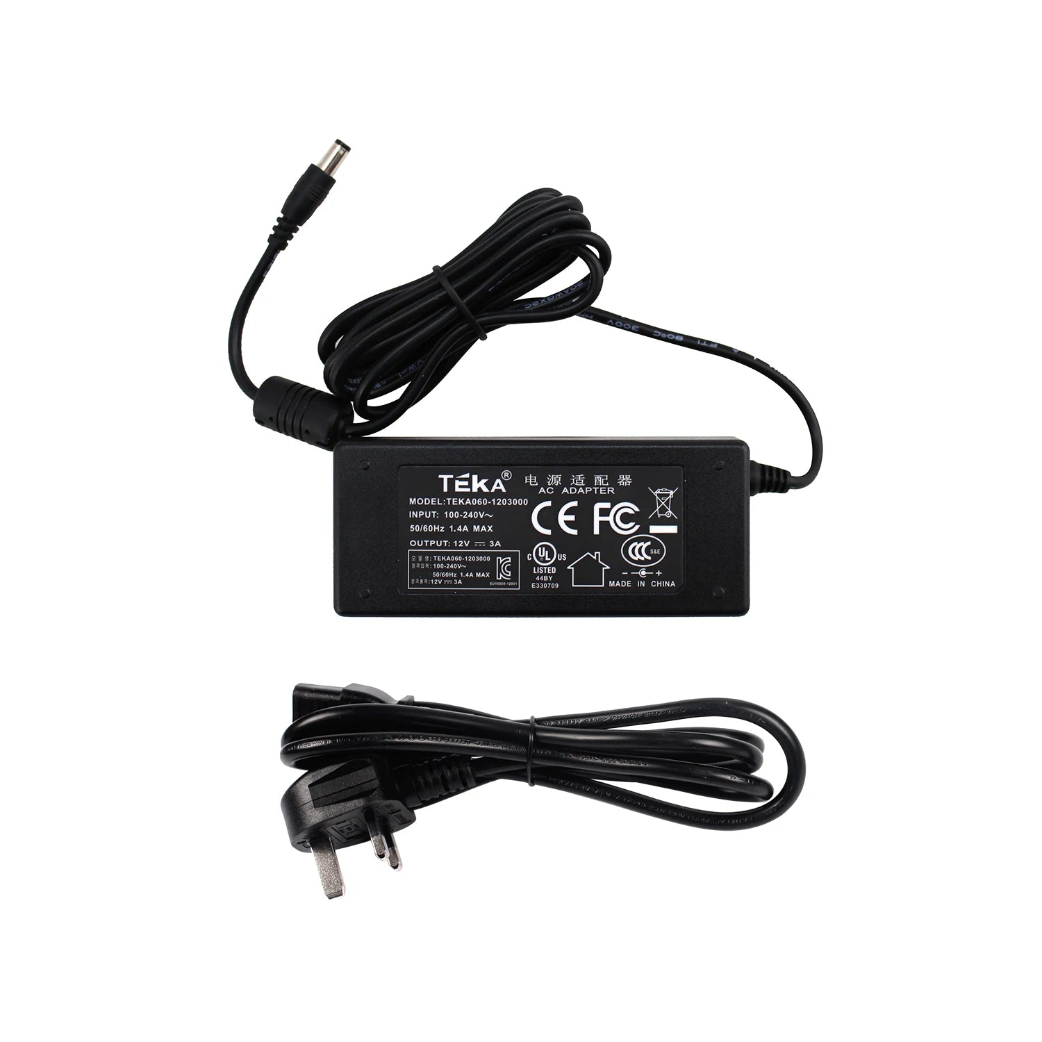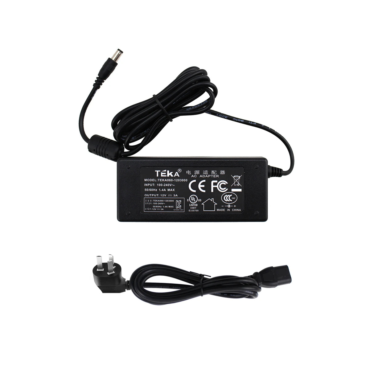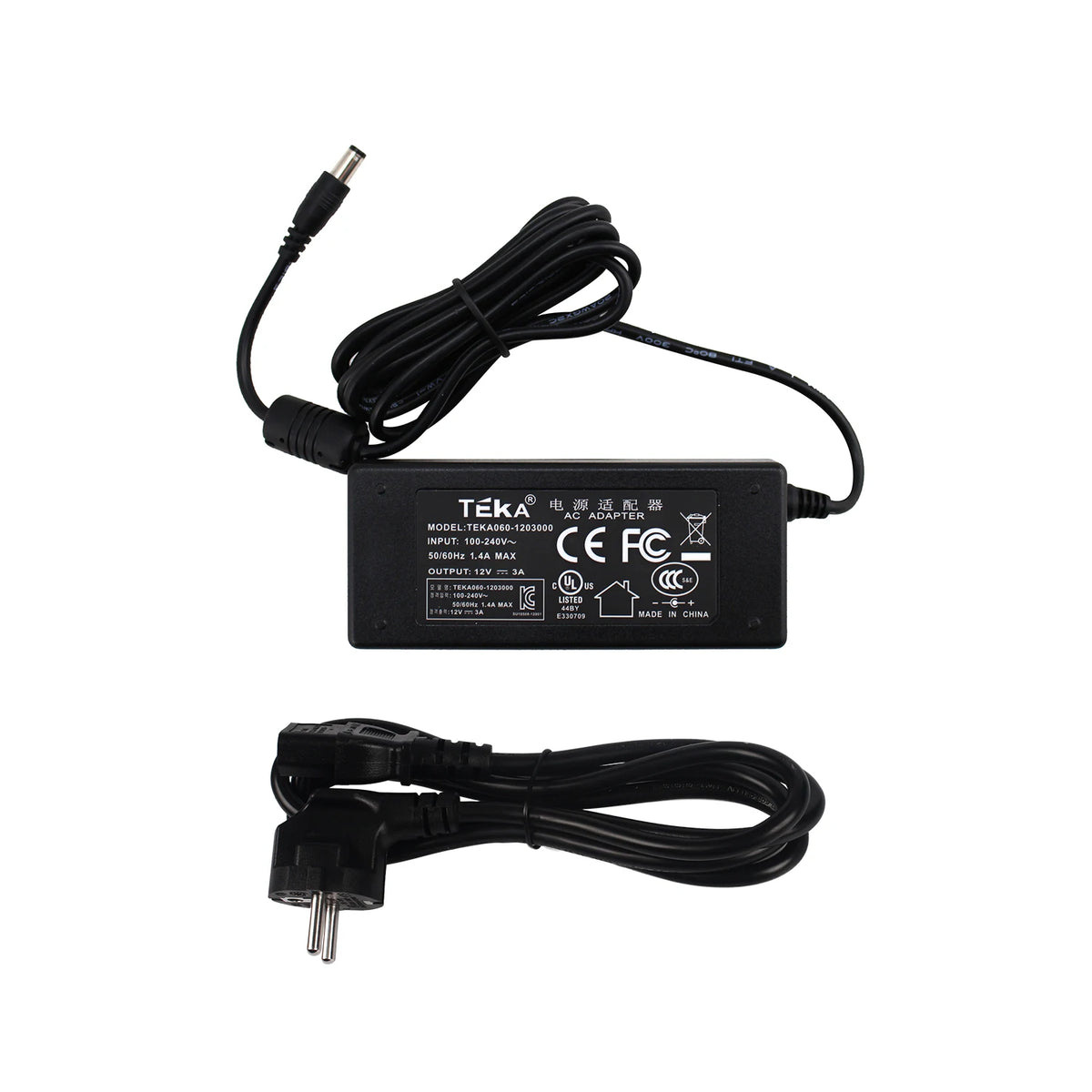 Įvestis: 100-240VAC, 3A, 50/60 Hz. Kilmė: Žemyninė Kinija. Modelis: PC03. Sertifikacija: CE. Tipas: Maitinimo kabelis.