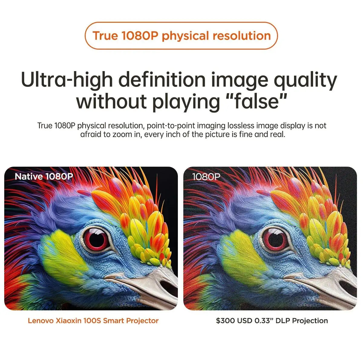 - Mėgaukitės erdvę taupančiu milžinišku ekranu: Projekcija iki 300 colių iš vos 1.3m atstumo, idealiai tinka mažoms patalpoms ar šoniniams nustatymams—puikiai tinka šeimos filmų vakarams, nes nereikia papildomos erdvės.