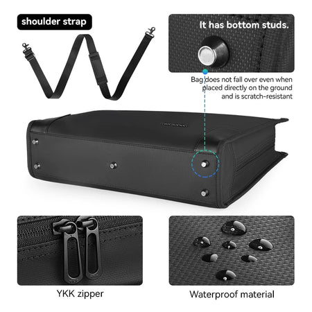 Ar jūs einate į biurą, ar į kavos parduotuvę užbaigti projektą, šis krepšys išlaiko jūsų būtiniausius daiktus tvarkingus ir lengvai pasiekiamus. Jo lengva konstrukcija leidžia jį nešioti visą dieną, todėl galite išlikti produktyvūs, nesijaučiant apkrautiems.