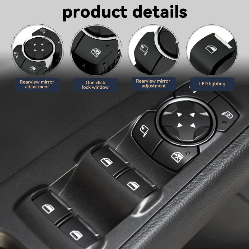 - 1 x Vairuotojo pusės elektrinio lango jungiklio komplektas su rankinio sulankstymo veidrodžių suderinamumu